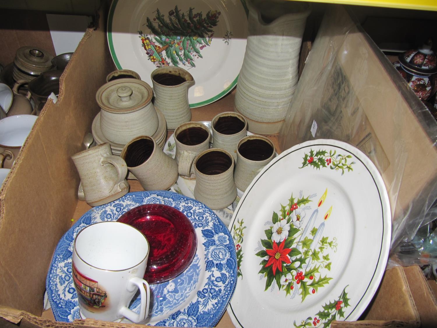 Box to Include Christmas Plate, Pottery Coffee Set etc.