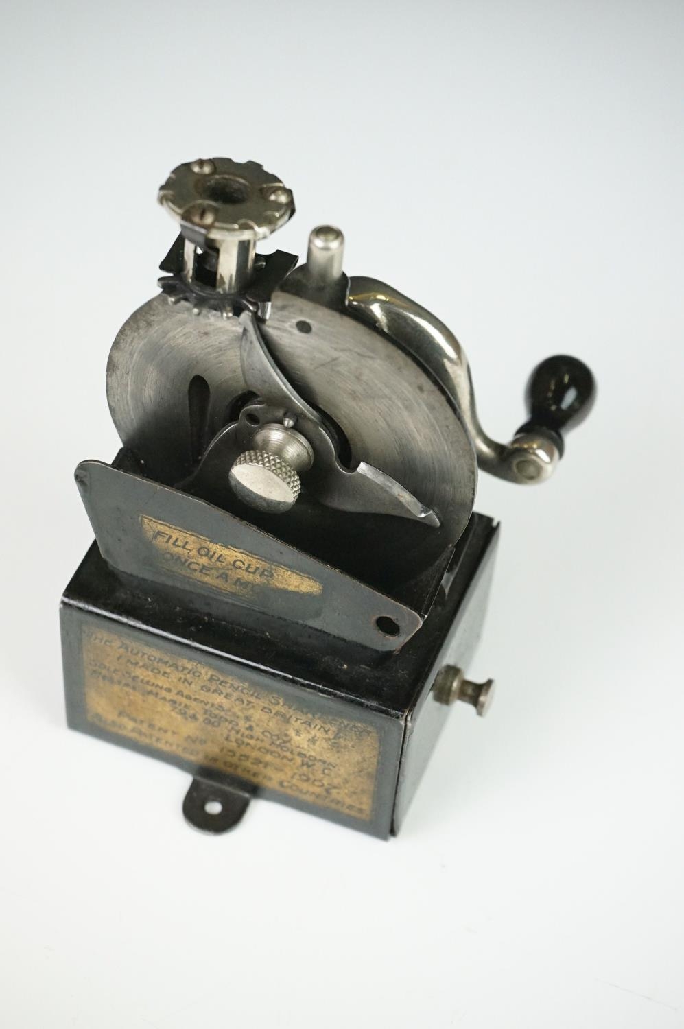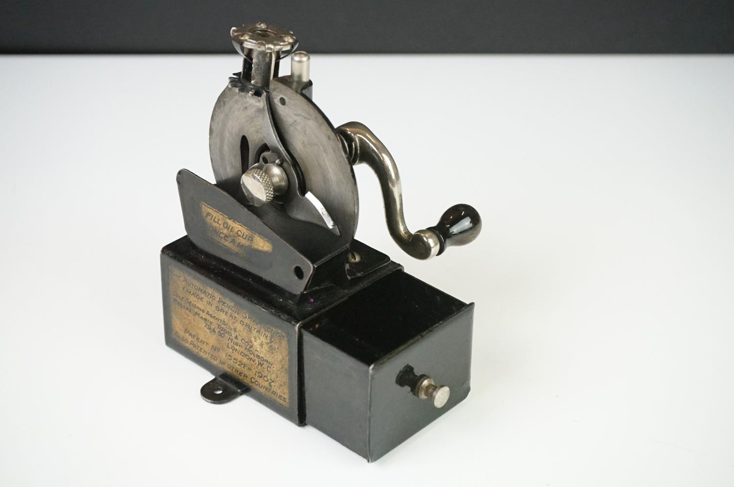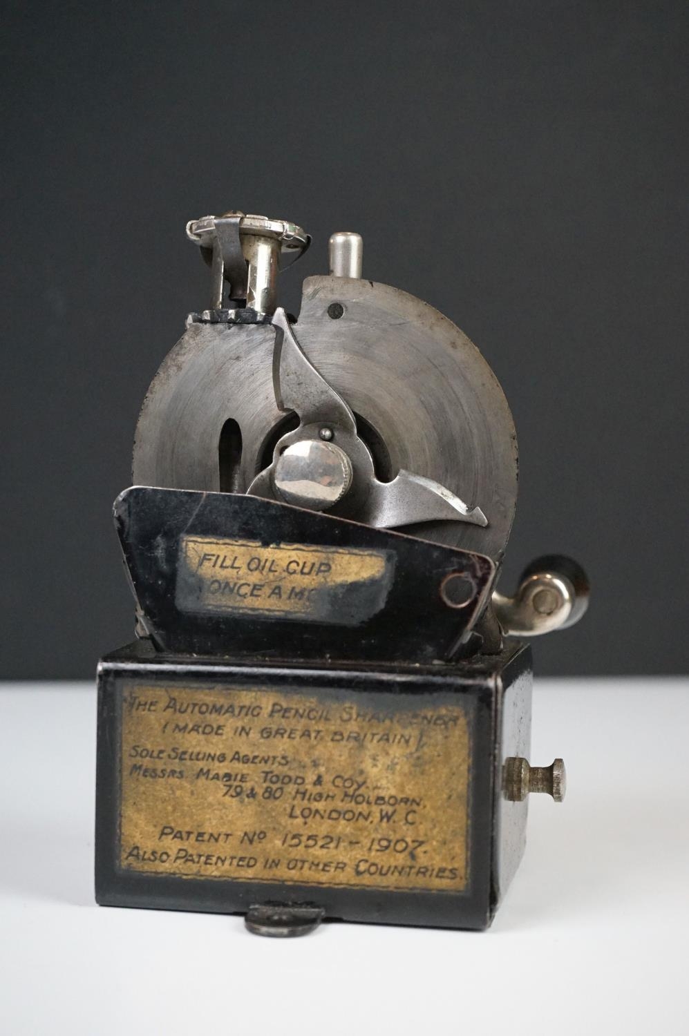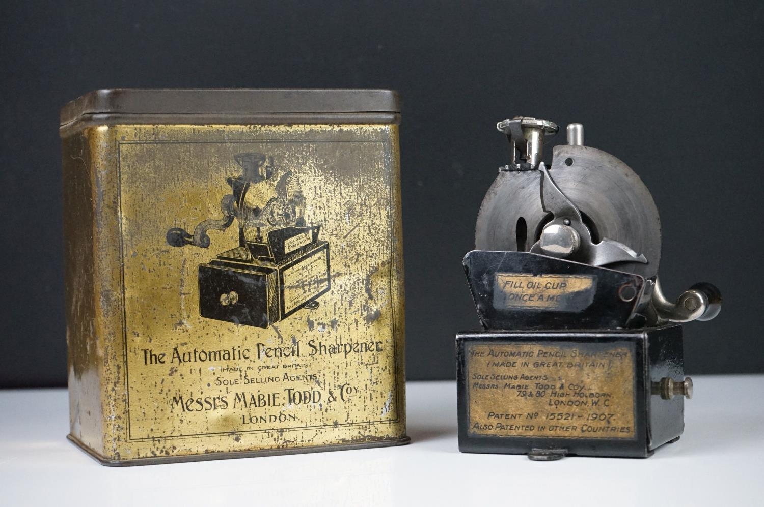Early 20th century Messrs Mabie Todd & Co ' The Automatic Pencil Sharpener ', 13cm high contained in it's original retail tin