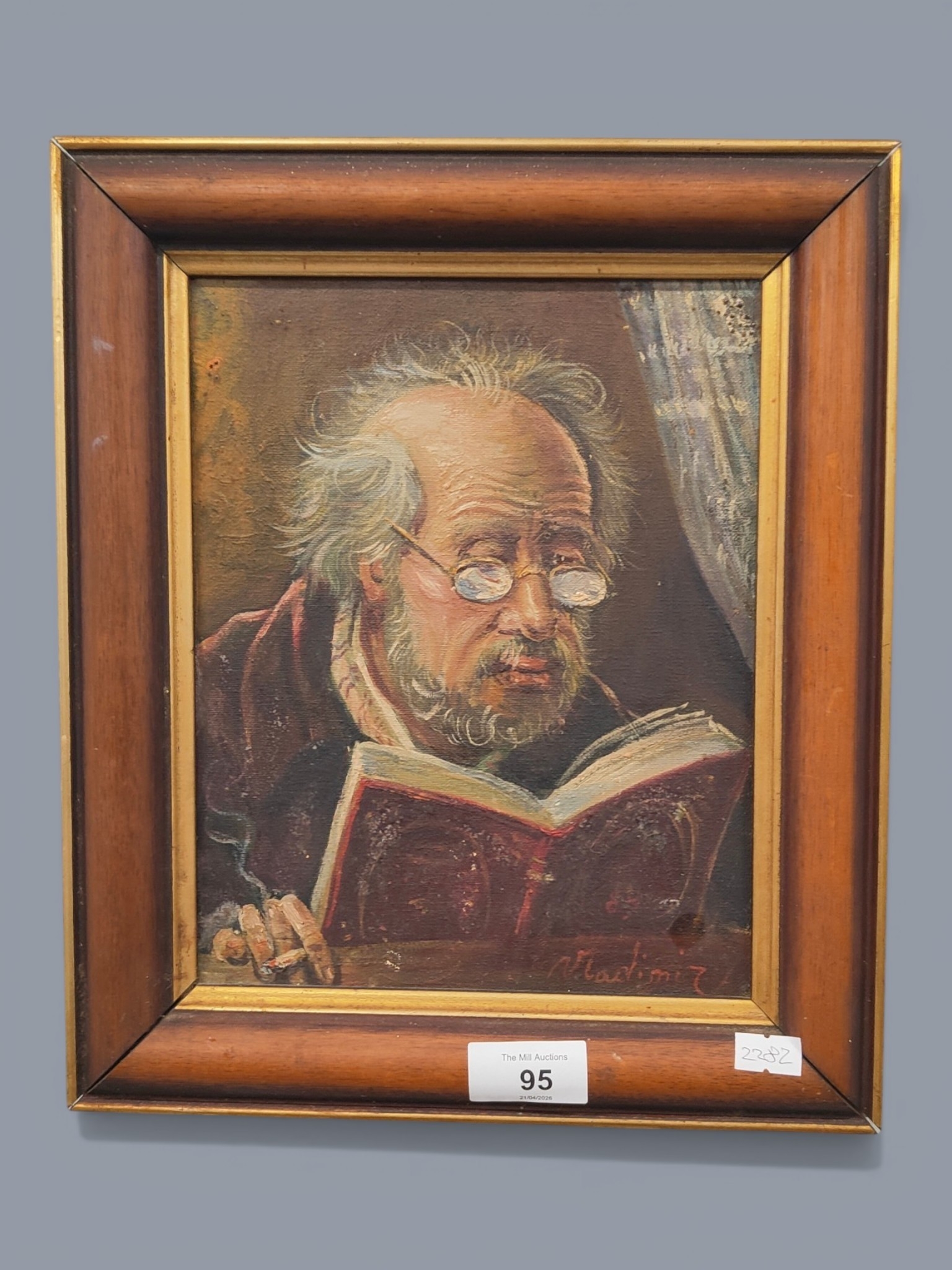 SMALL OIL ON CANVAS OLD MAN READING BOOK BY RUSSIAN ARTIST VLADIMIR STOJANVIC