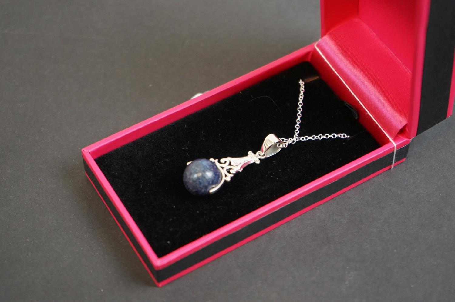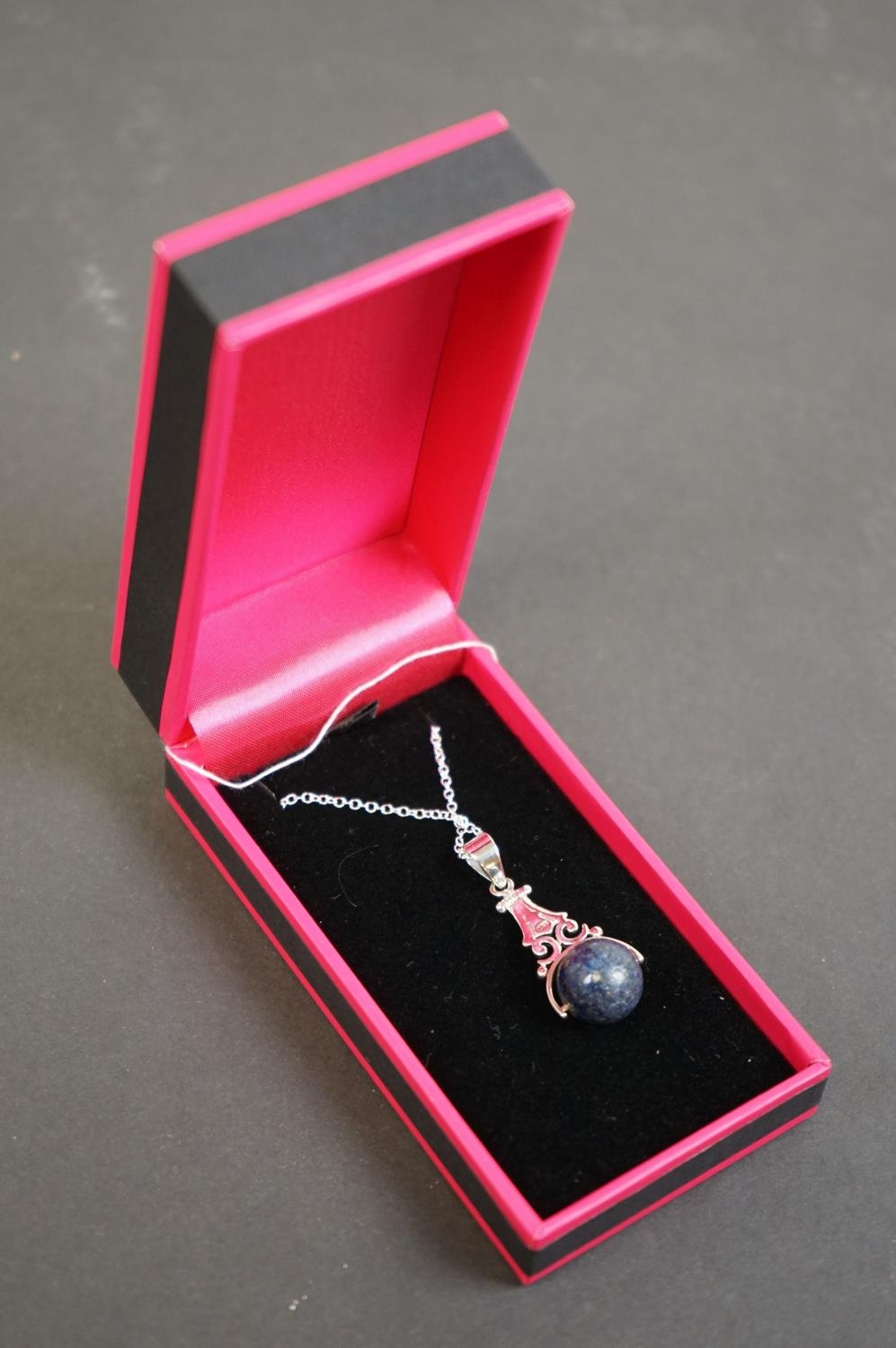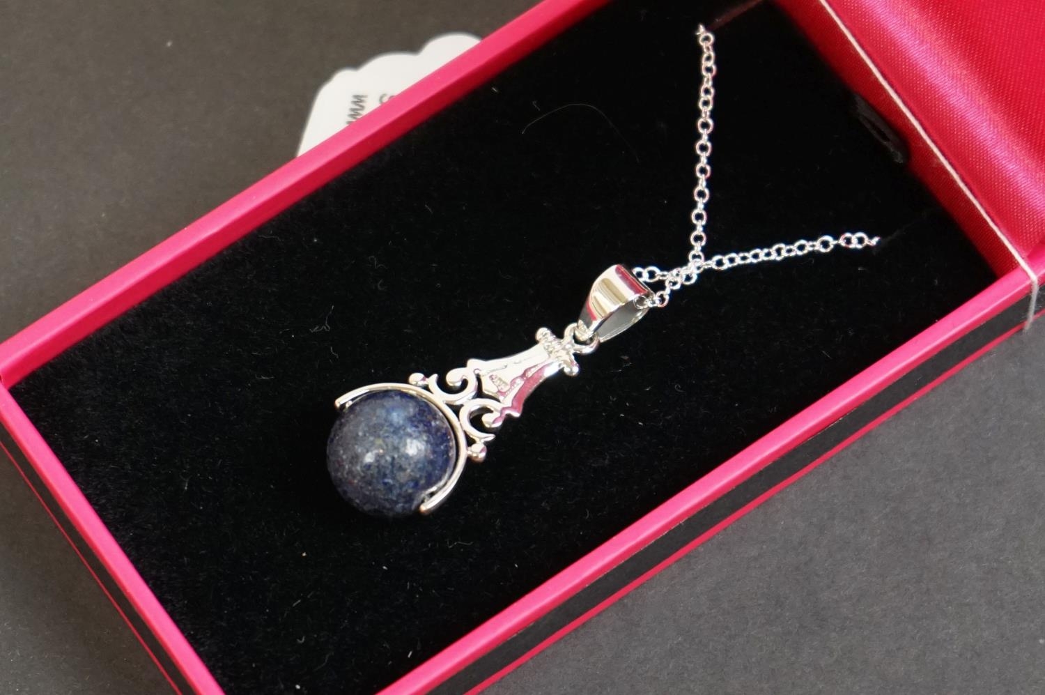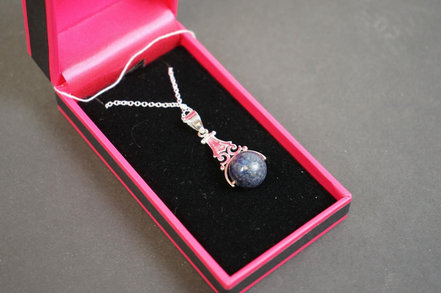 Silver pendant necklace with Lapis Lazuli ball