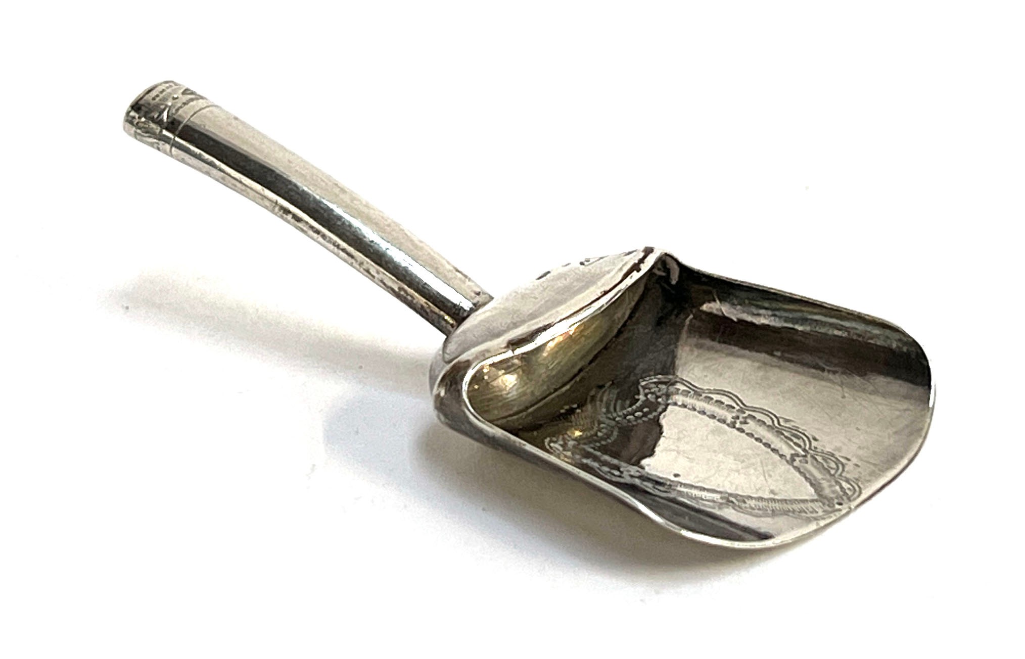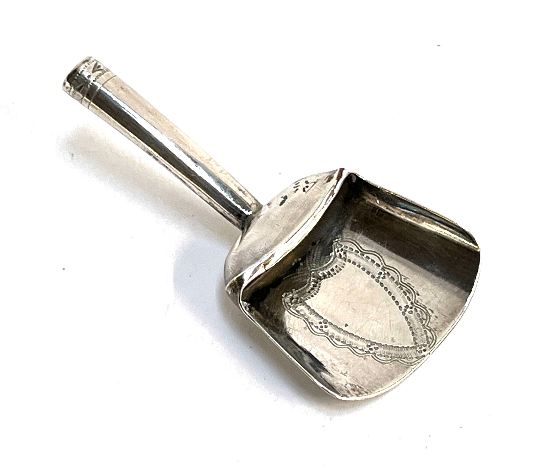 A small George III silver shovel shaped caddy spoon, maker's mark IT, Birmingham 1802, 6g