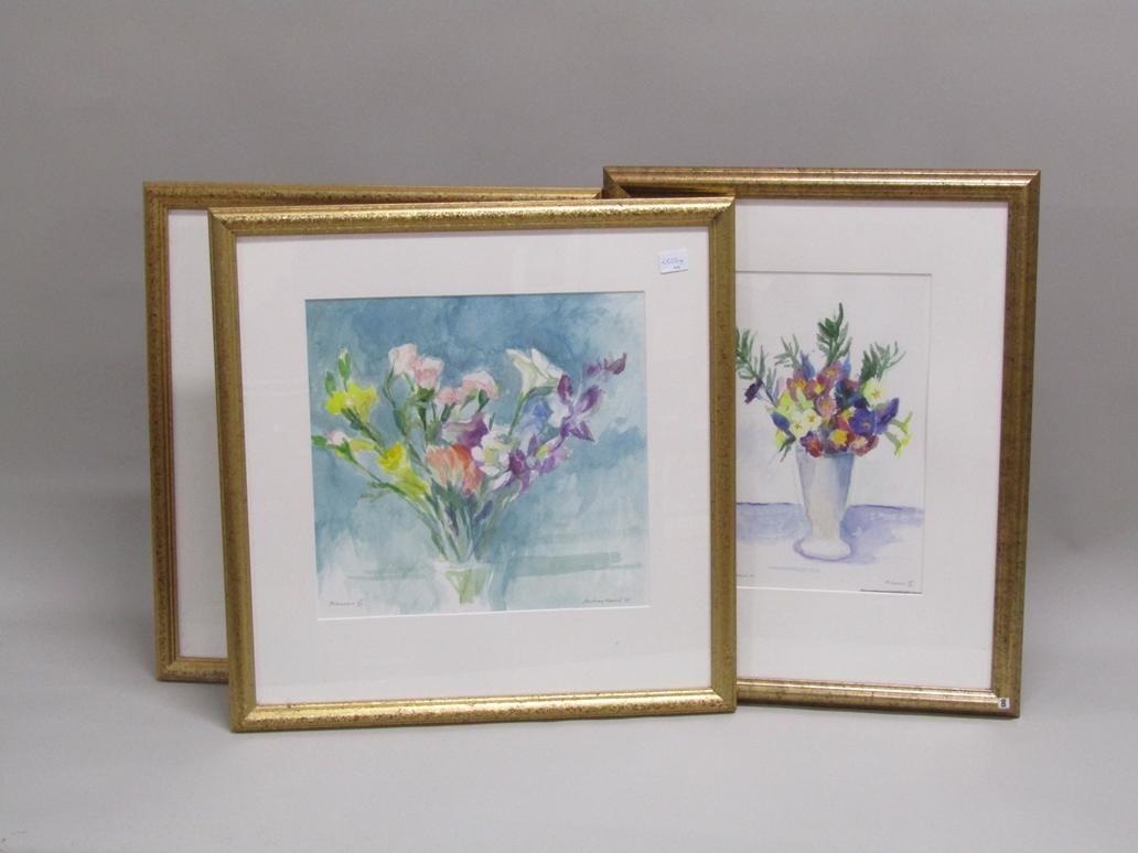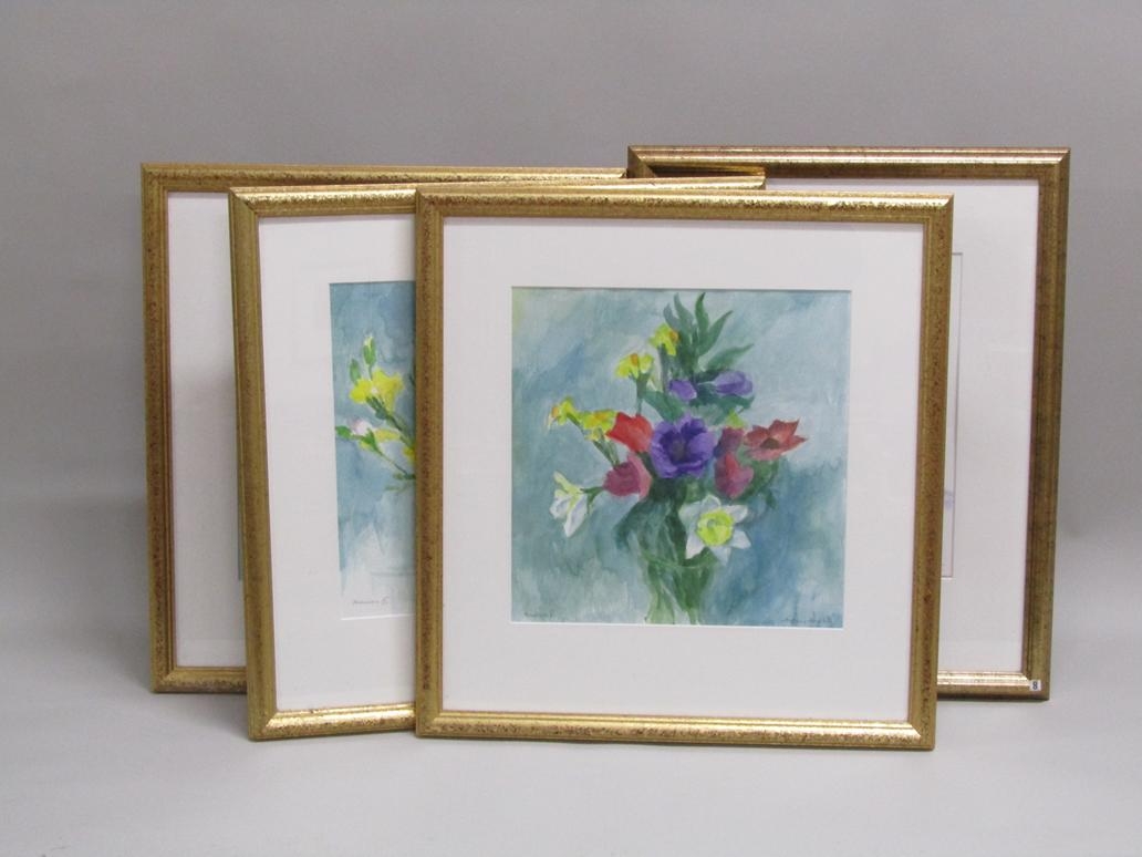 ANTHONY HARRIS - SERIES OF FOUR F/G FLORAL WATERCOLOURS, NAMED & SIGNED