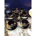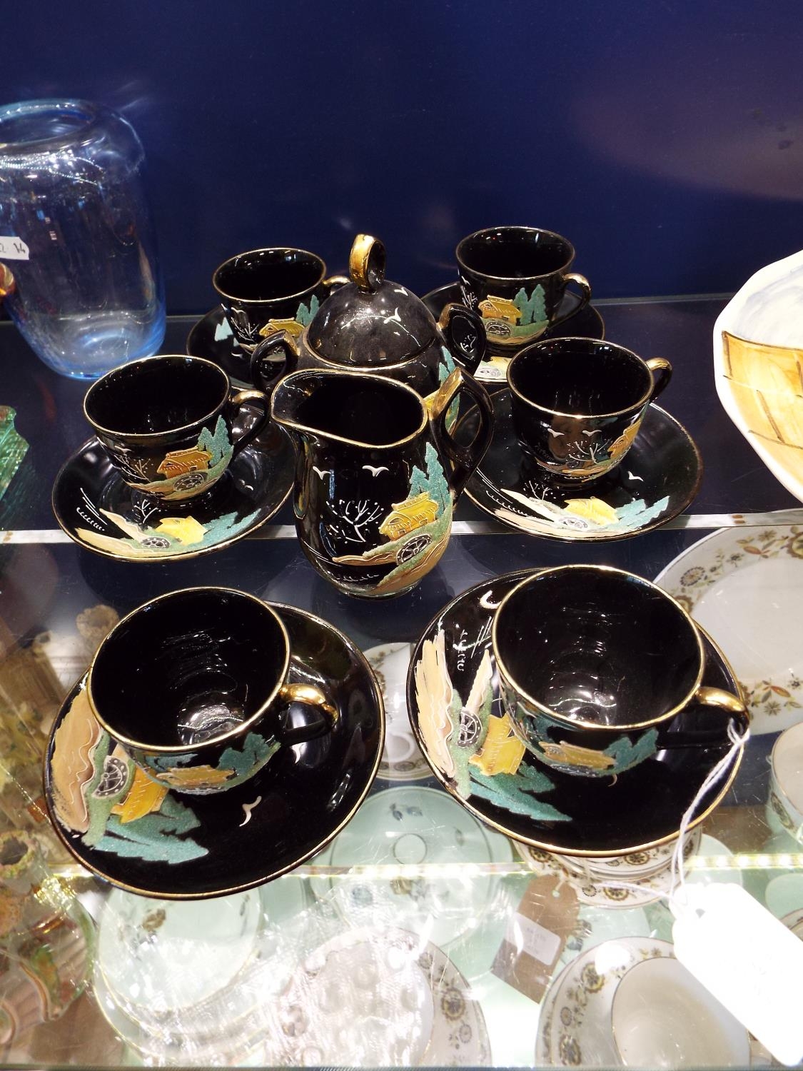 A Continental part tea set with embossed watermill decoration