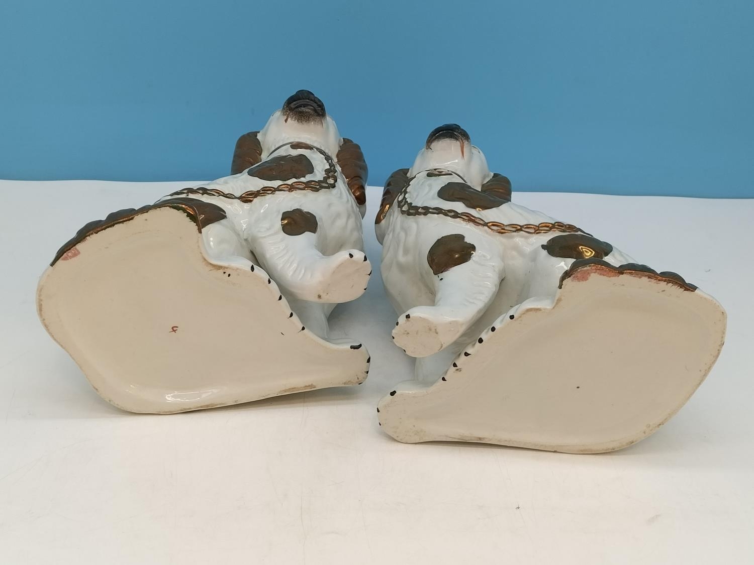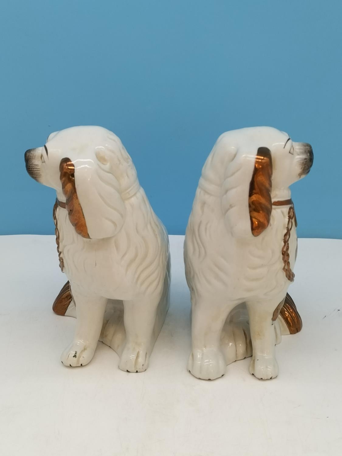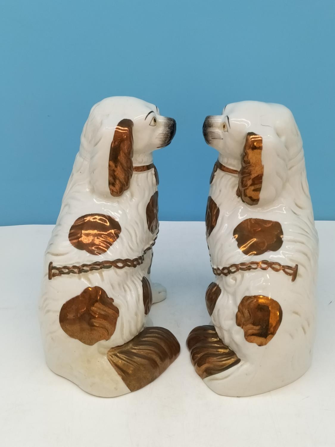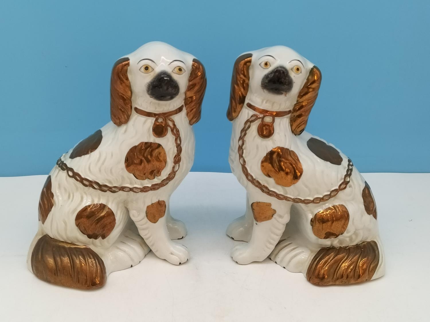 Pair of Mid/Late 19th Century Staffordshire Mantel Dogs, Hand Painted with a Gold Lustre Finish. 22cm High.
