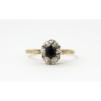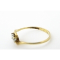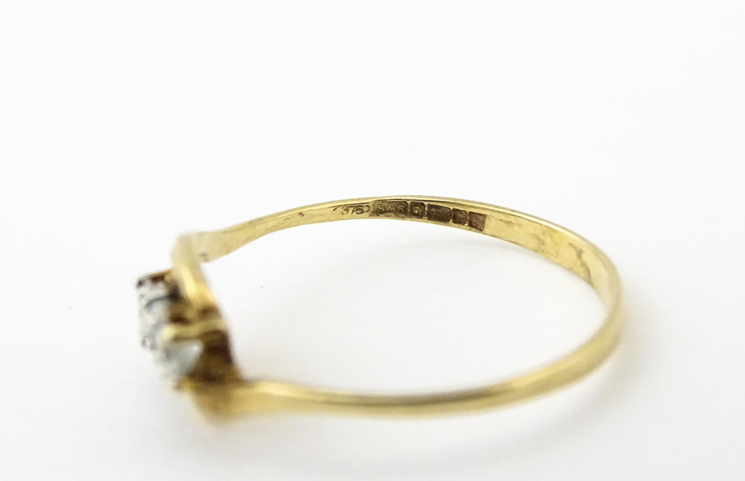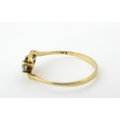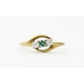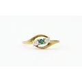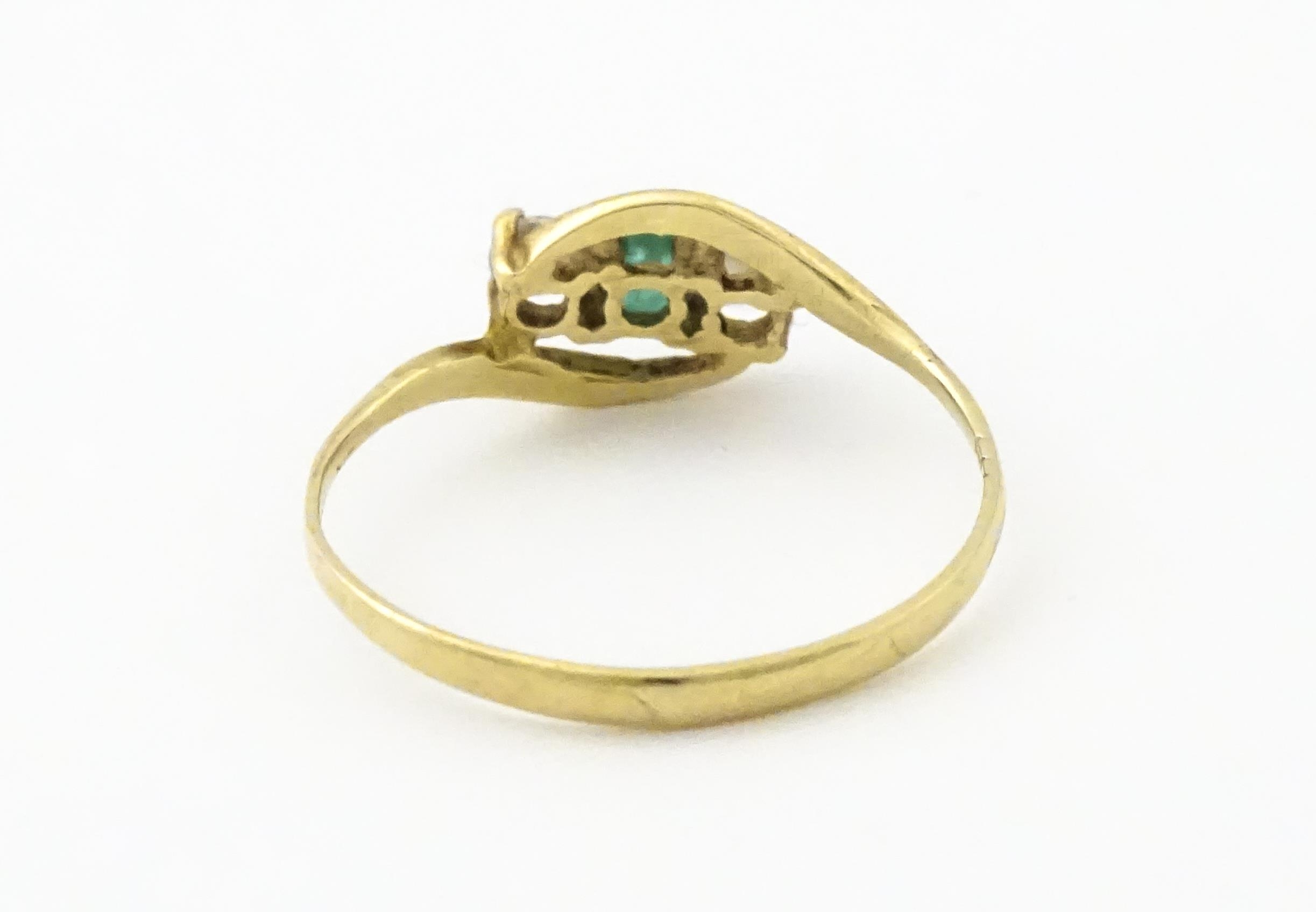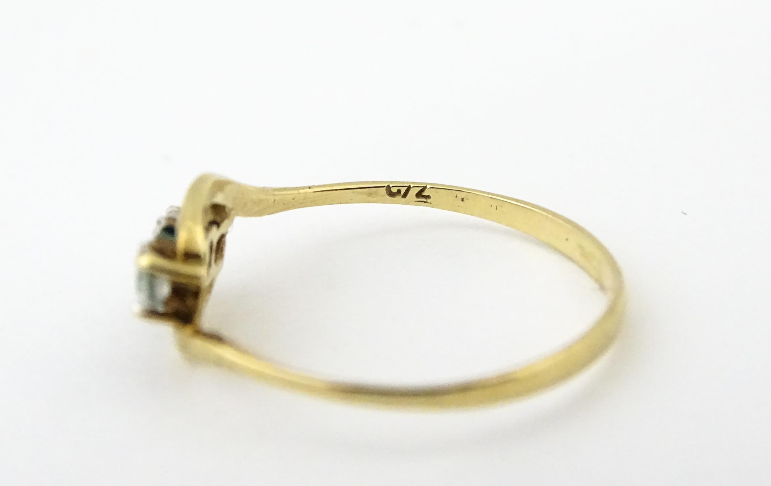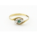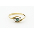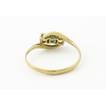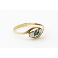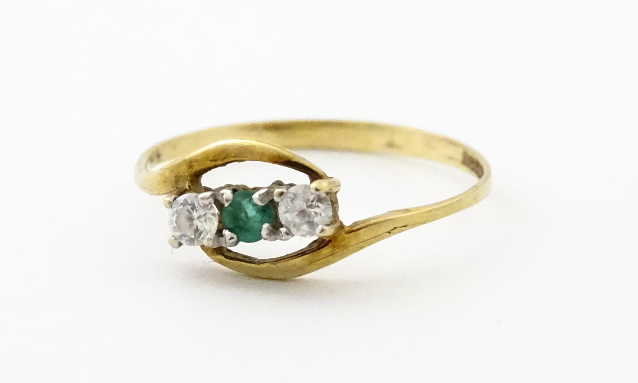 A 9ct gold ring set with central green stone flanked by white stones. Ring size approx. O 1/2