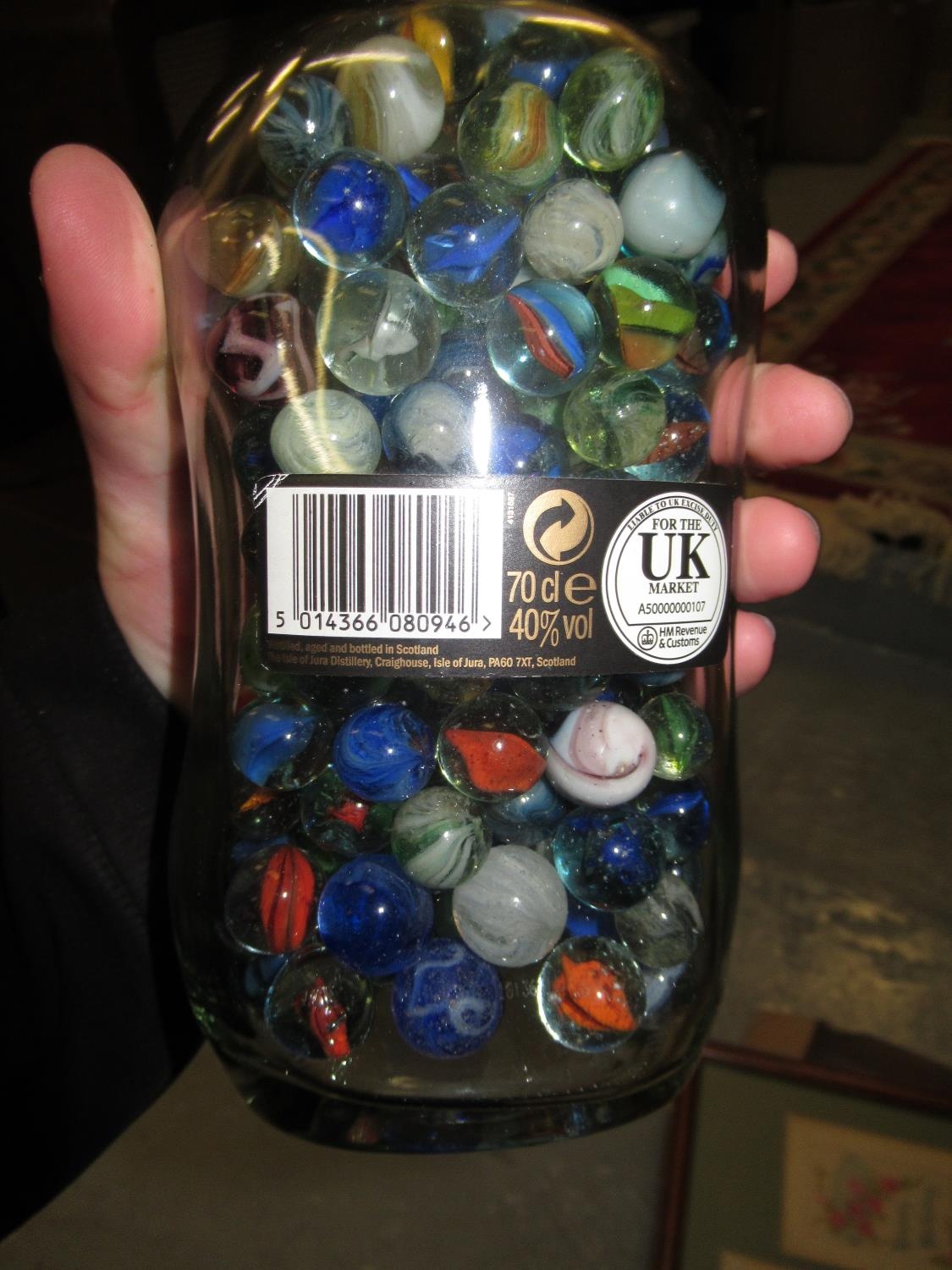 Box containing a quantity of miscellaneous items including postcards, marbles, die-cast vehicles, metal figures of dragons etc.