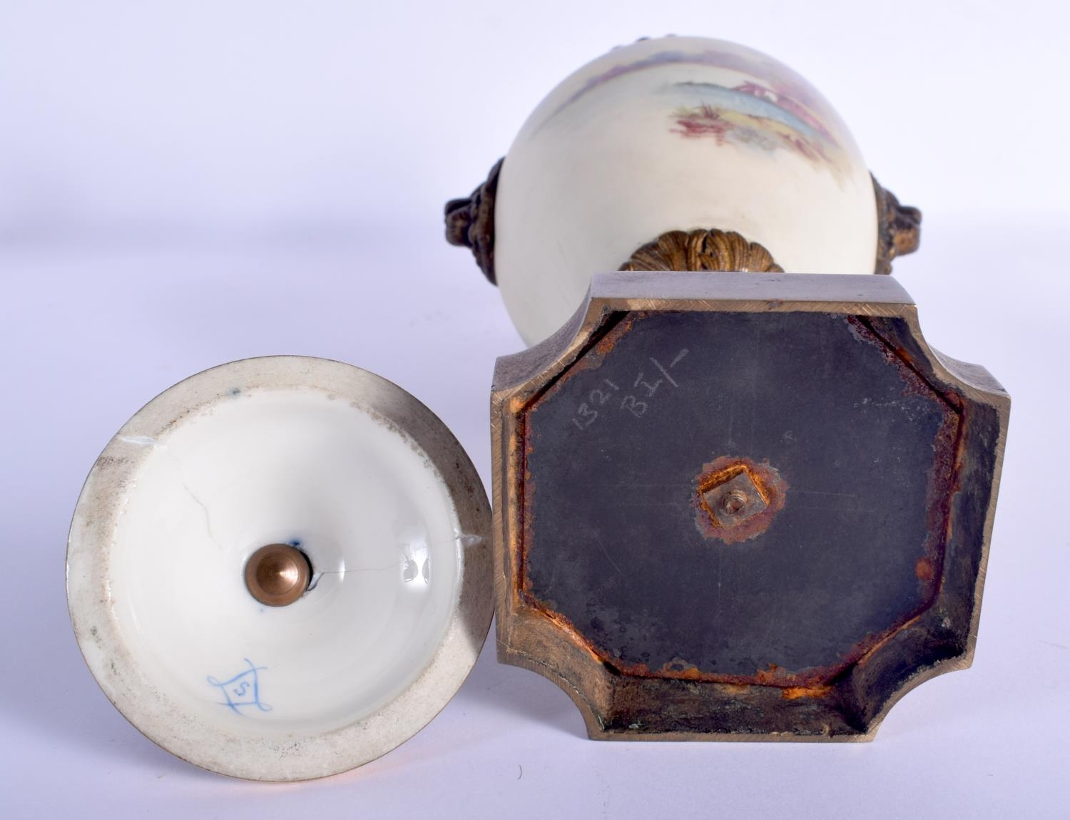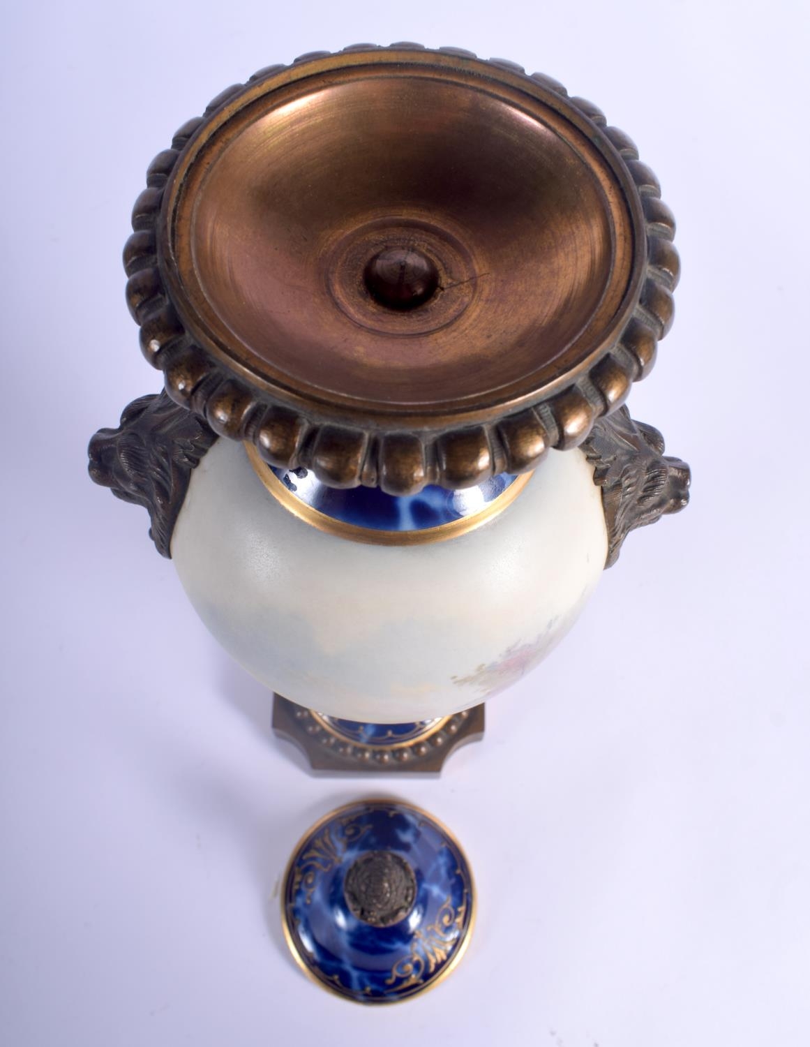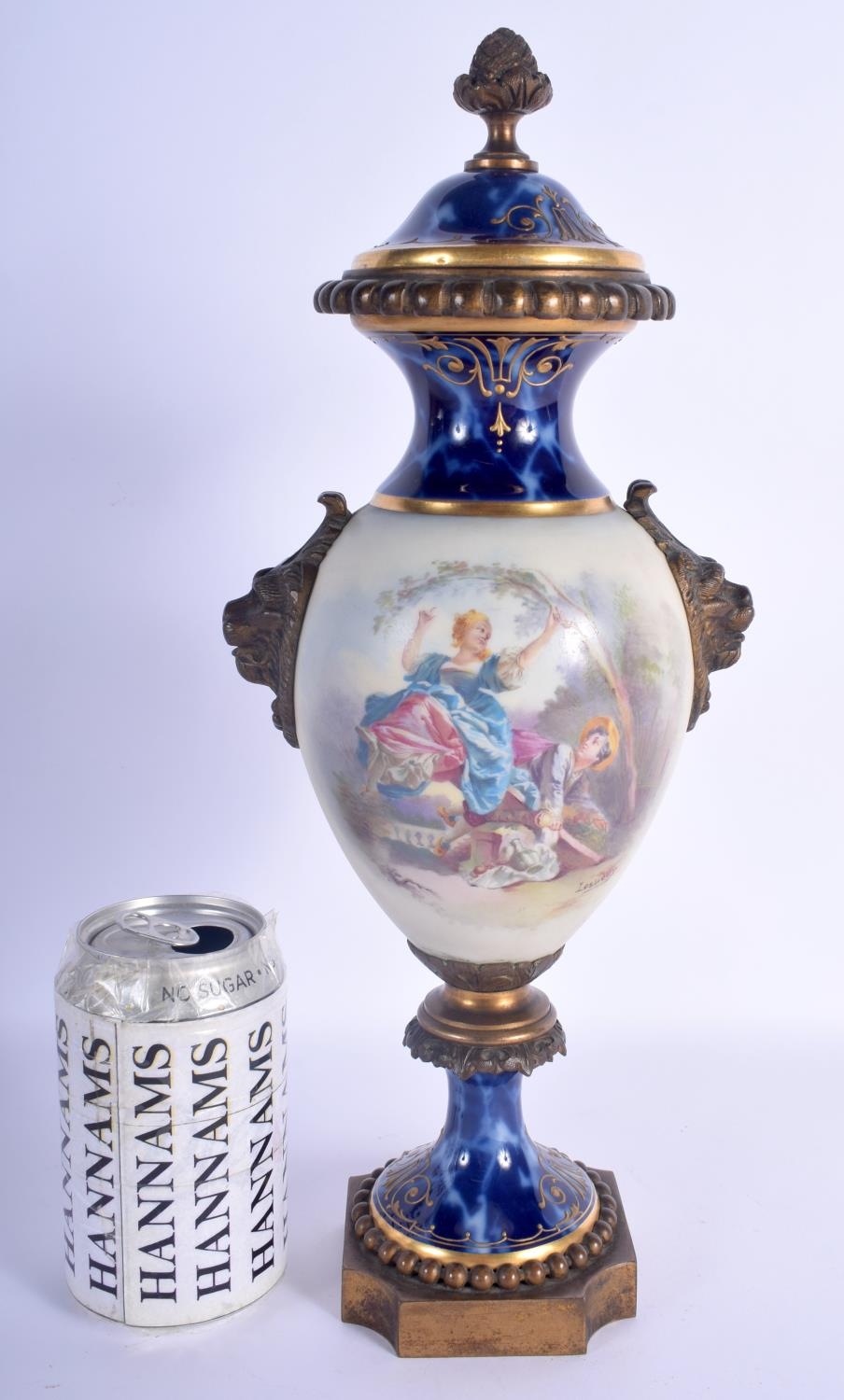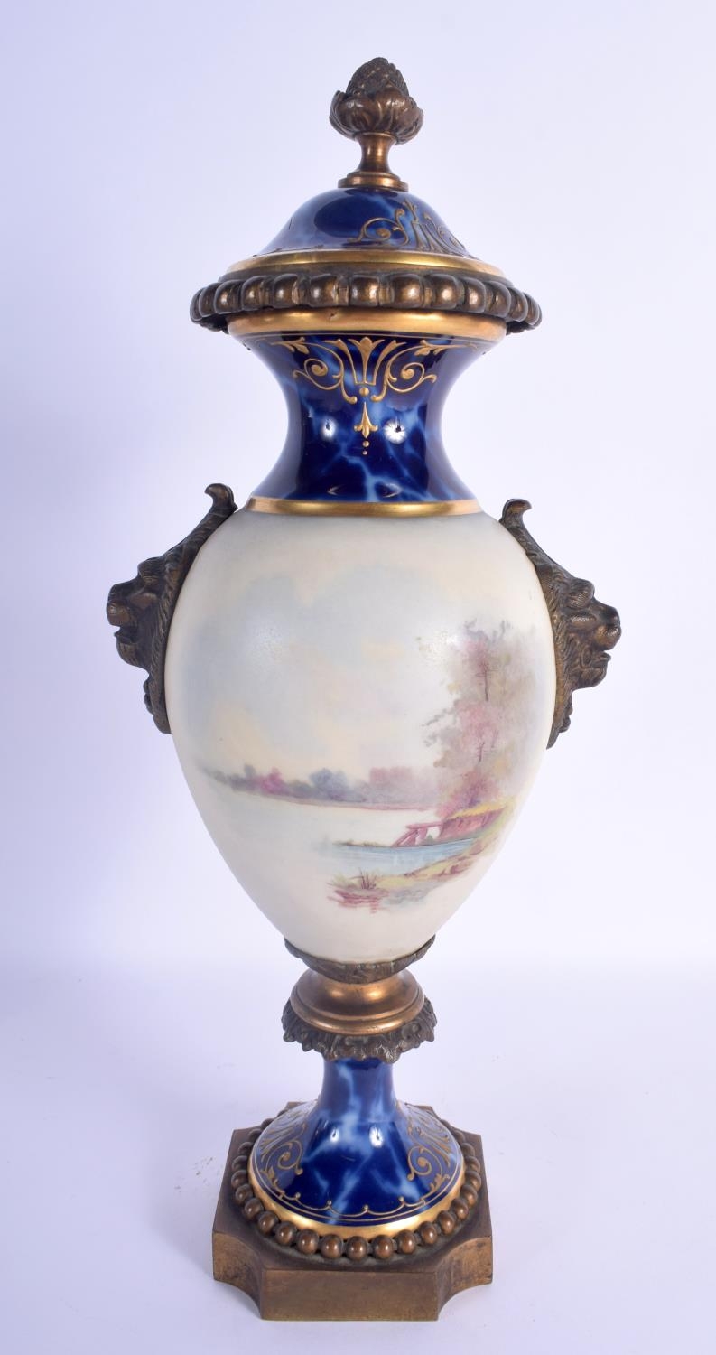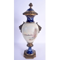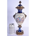A 19TH CENTURY FRENCH PARIS PORCELAIN VASE AND COVER possibly Sevres, painted with lovers within landscapes. 36 cm high.