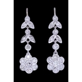 PAIR OF DIAMOND DROP FLORAL EARRINGS, set with 2 leaf shaped diamond set tops, suspending a diamond cluster. Diamonds totalling approx. 1.12 ct. L. 2.5 cm. 3.2 grams.