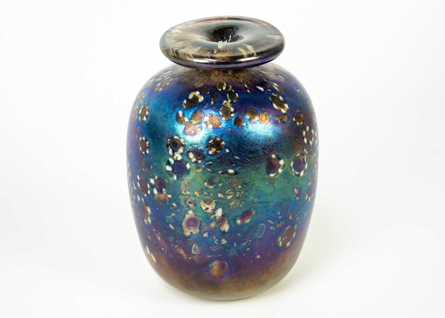 Peter Layton (1940) Studio glass ovoid vase. Signed to base, height 14cm.