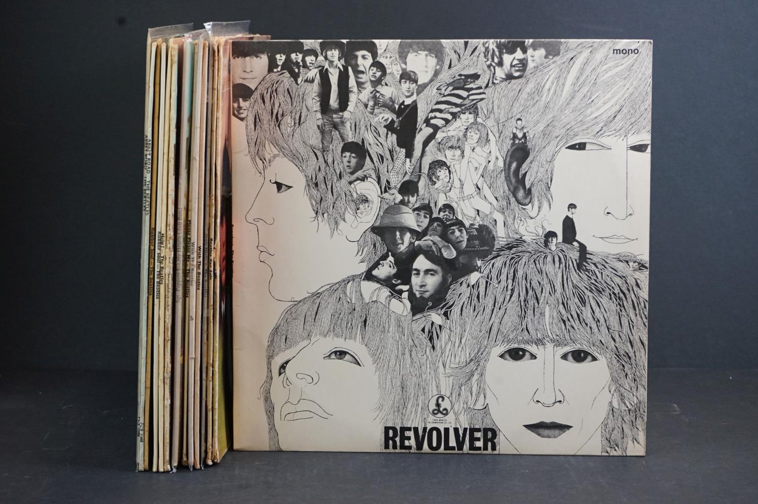Vinyl - The Beatles 14 LP's to include Sgt Pepper, HELP!, Rubber Soul, Abbey Road, Revolver, For Sale, A Hard Days Night, With The Beatles, Please Please Me. Some duplication. Condition varies throughout