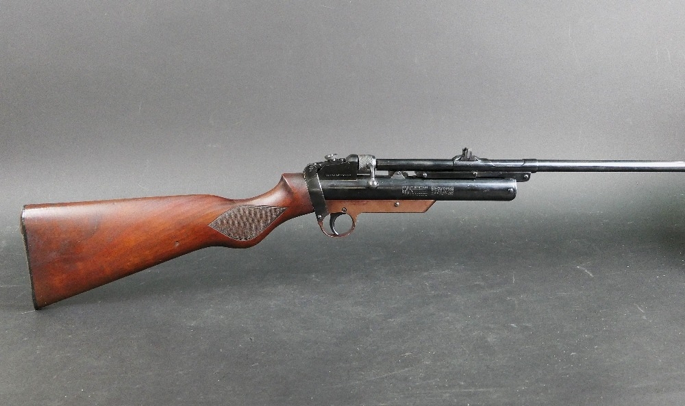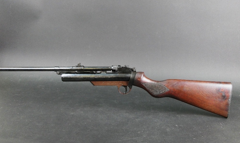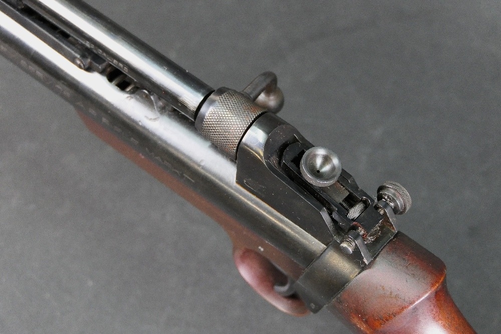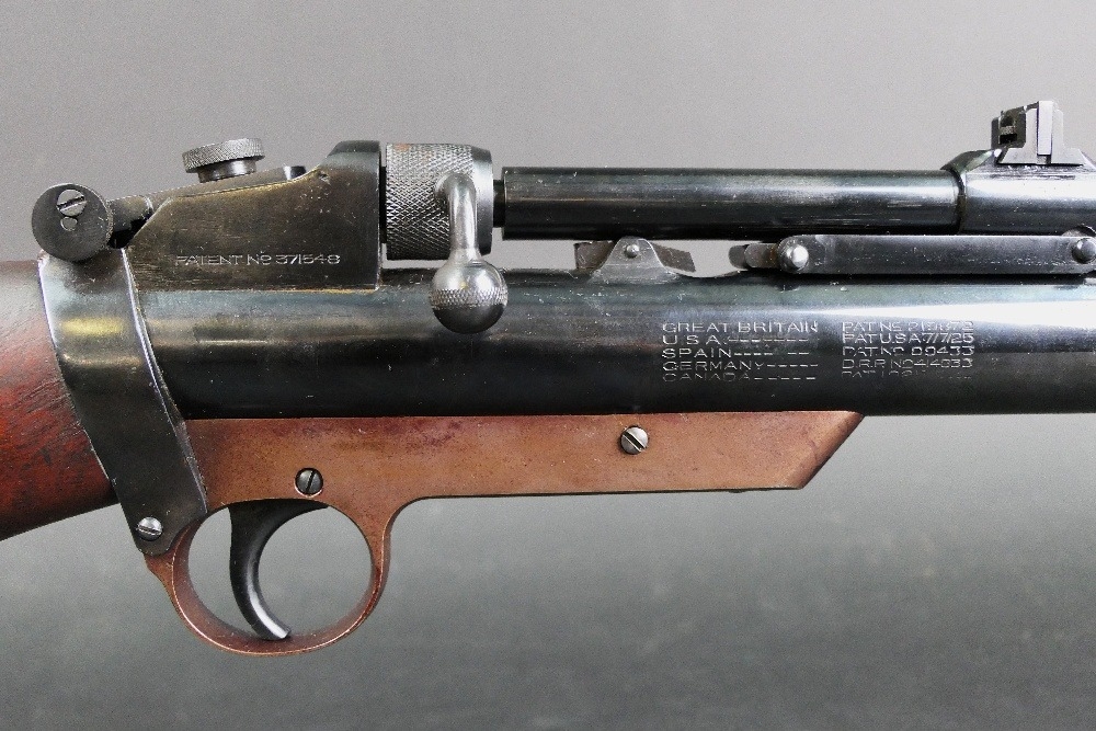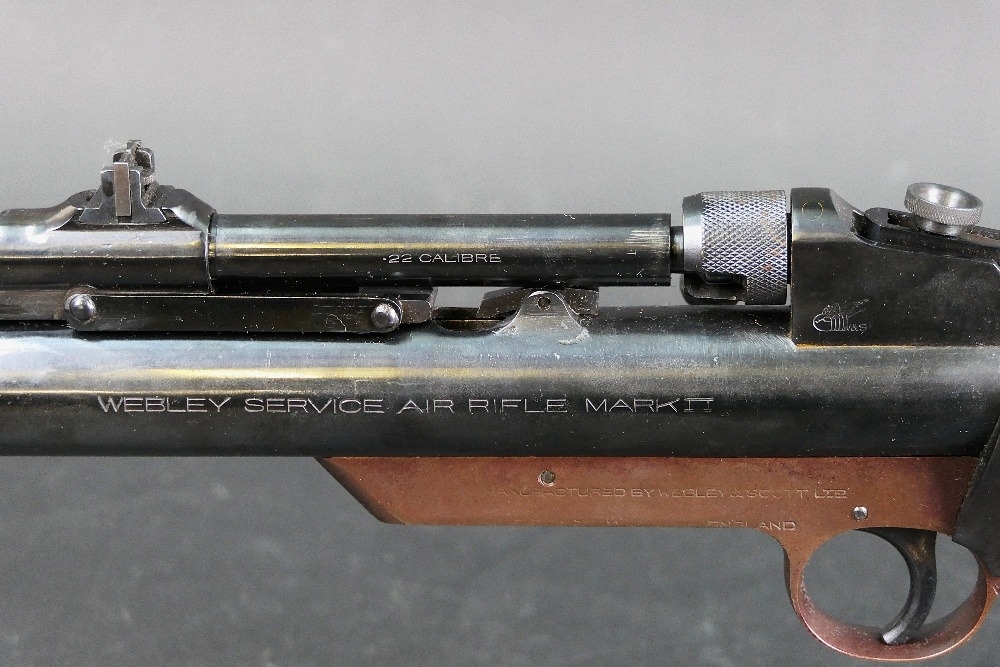 A Webley Service Mk II air rifle, break barrel cal 22 stamped to left-hand side Webley Service Air Rifle Mk II and manufactured by Webley & Scott Ltd England, the right-hand side with various Patent numbers and stamped with Serial No. 10417. WE CANNOT POST AIR GUNS TO PRIVATE ADDRESSES. POSTAGE TO REGISTERED FIREARMS DEALERS ONLY.
