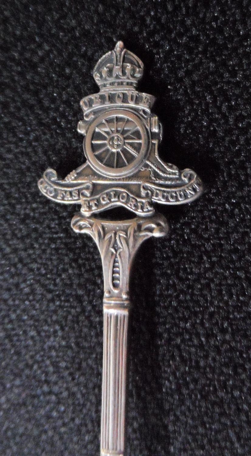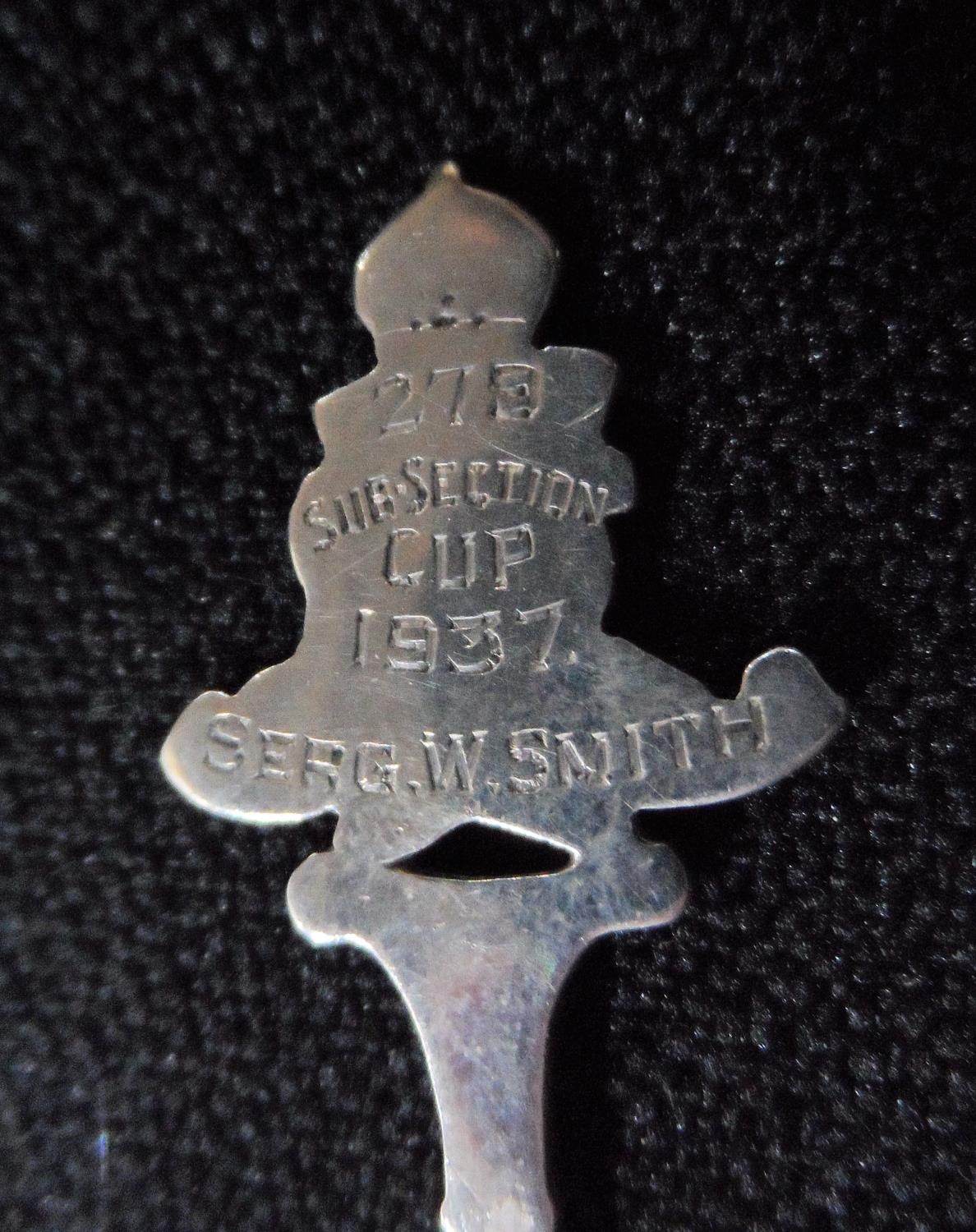 1937 Birmingham silver presentation spoon bearing the Royal Artillery motif, presented to Sargent W Smith for winning the sub section cup,