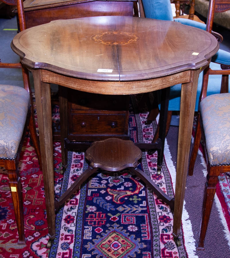 SHAPED MAHOGANY TWO TIER OCCASIONAL TABLE . 69 CM W, 73CM H