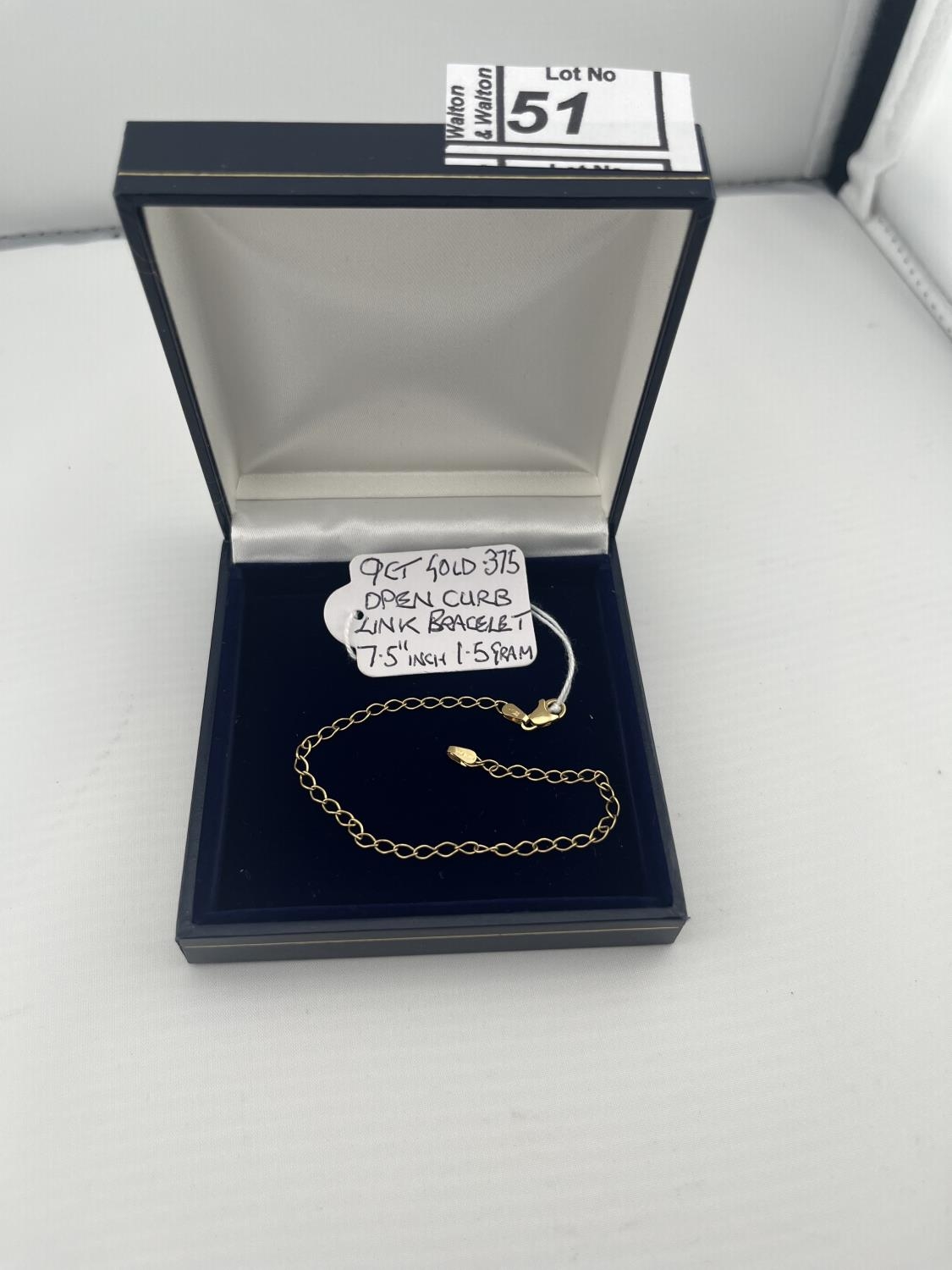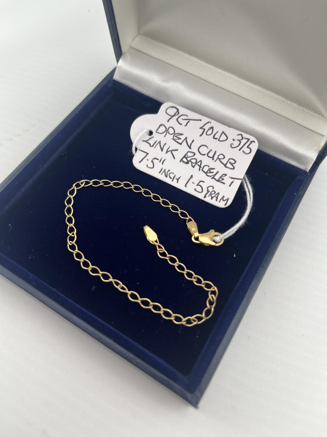 7.5" 9ct Gold open curb bracelet, 1.5g - Only 10% buyer's premium