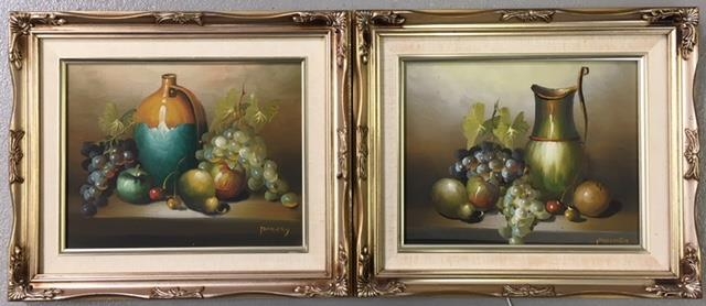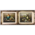 A pair of oils on board. Still Life. Signed but artist not recognised.