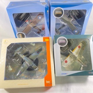 3 Oxford Diecast Front line fighter planes, Nakajima Ki43 AC039, Bristol F2B Royal Flying Corps AD001, DH4 RAF 212 Squadron AD002, and Ixo Models Blackburn Skuda MkII (scale 1:72) - Planes Very Good, boxes Very Good (4) 1300g