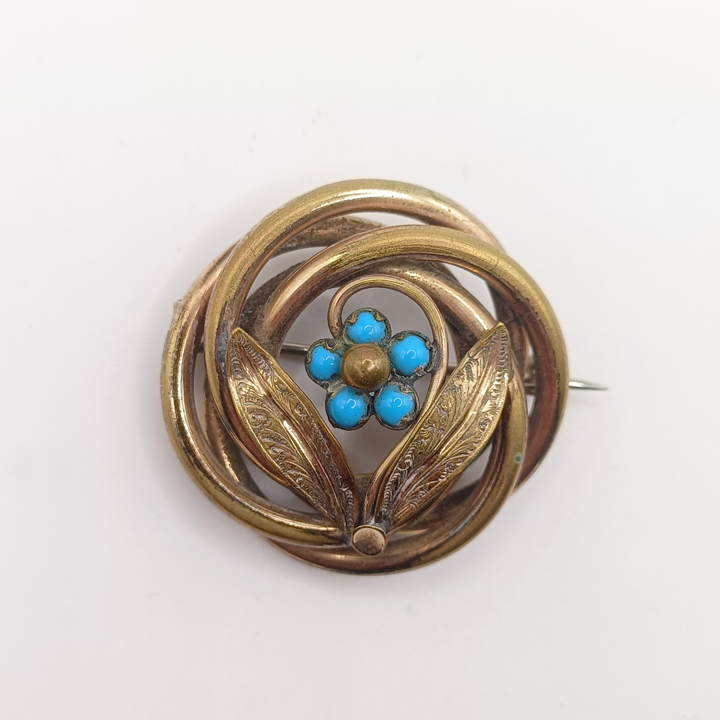 A late 19th/early 20th century gilt metal and turquoise brooch