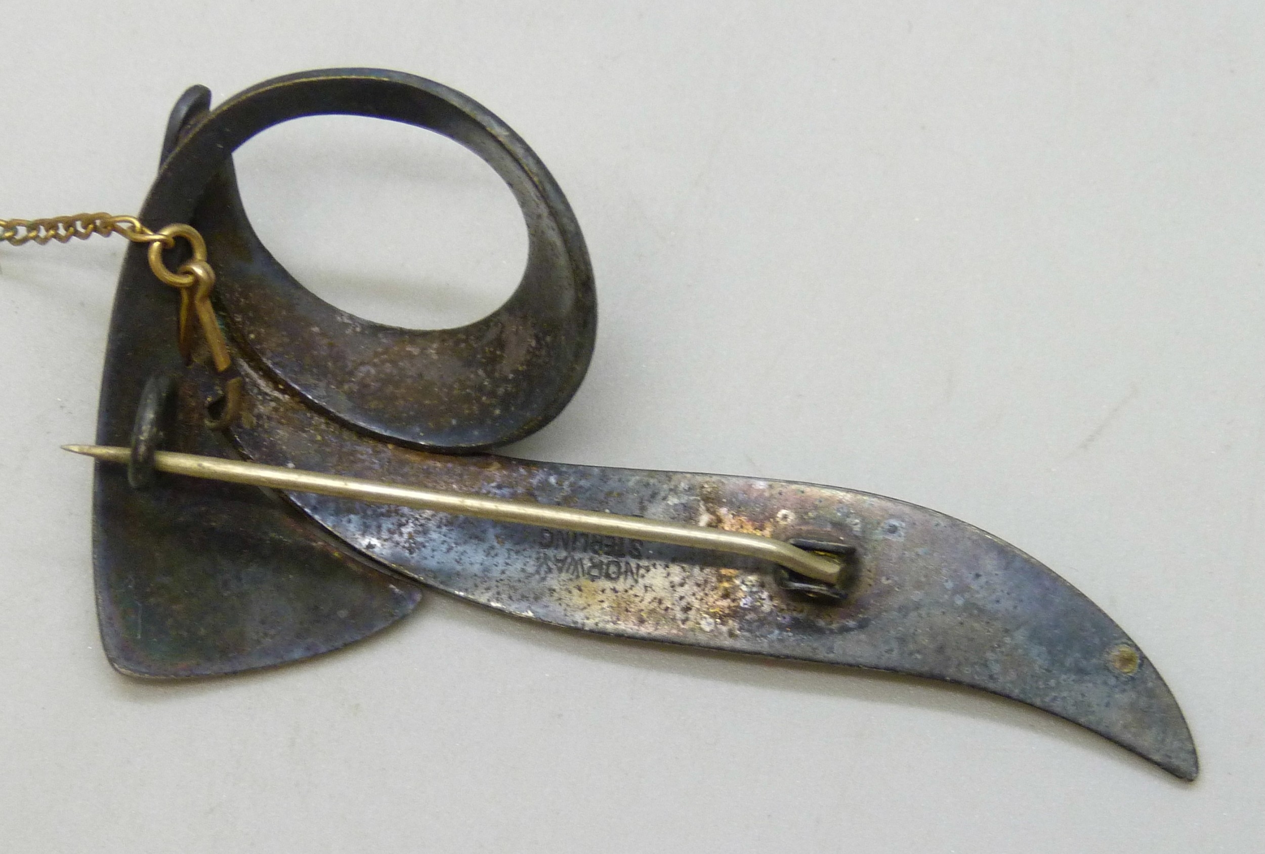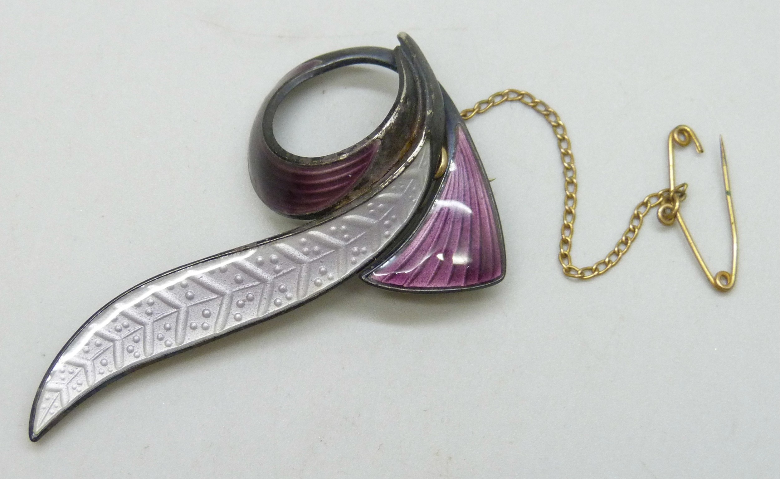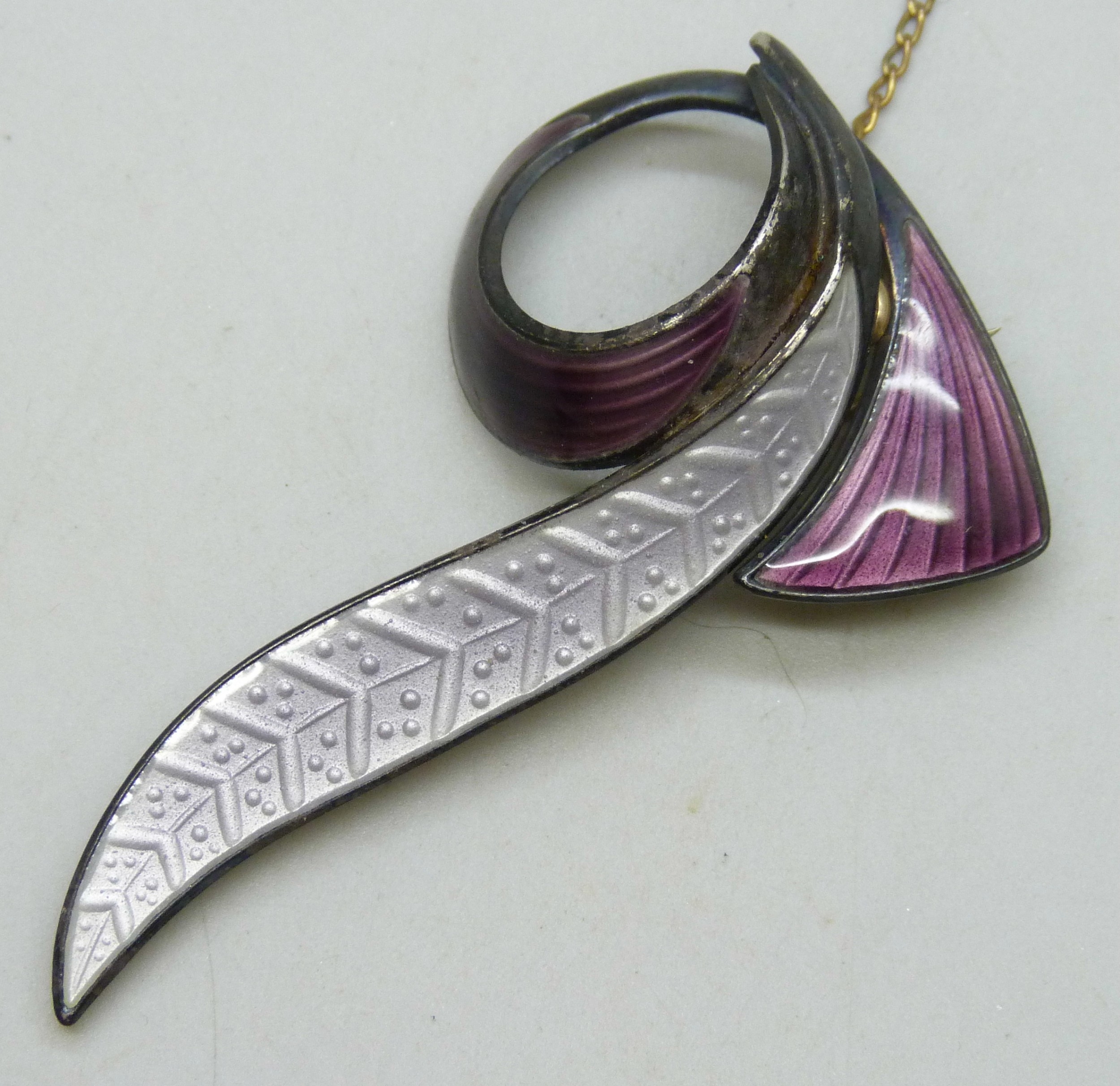 An Aksel Holmsen silver and guilloche enamel brooch, 5.6cm