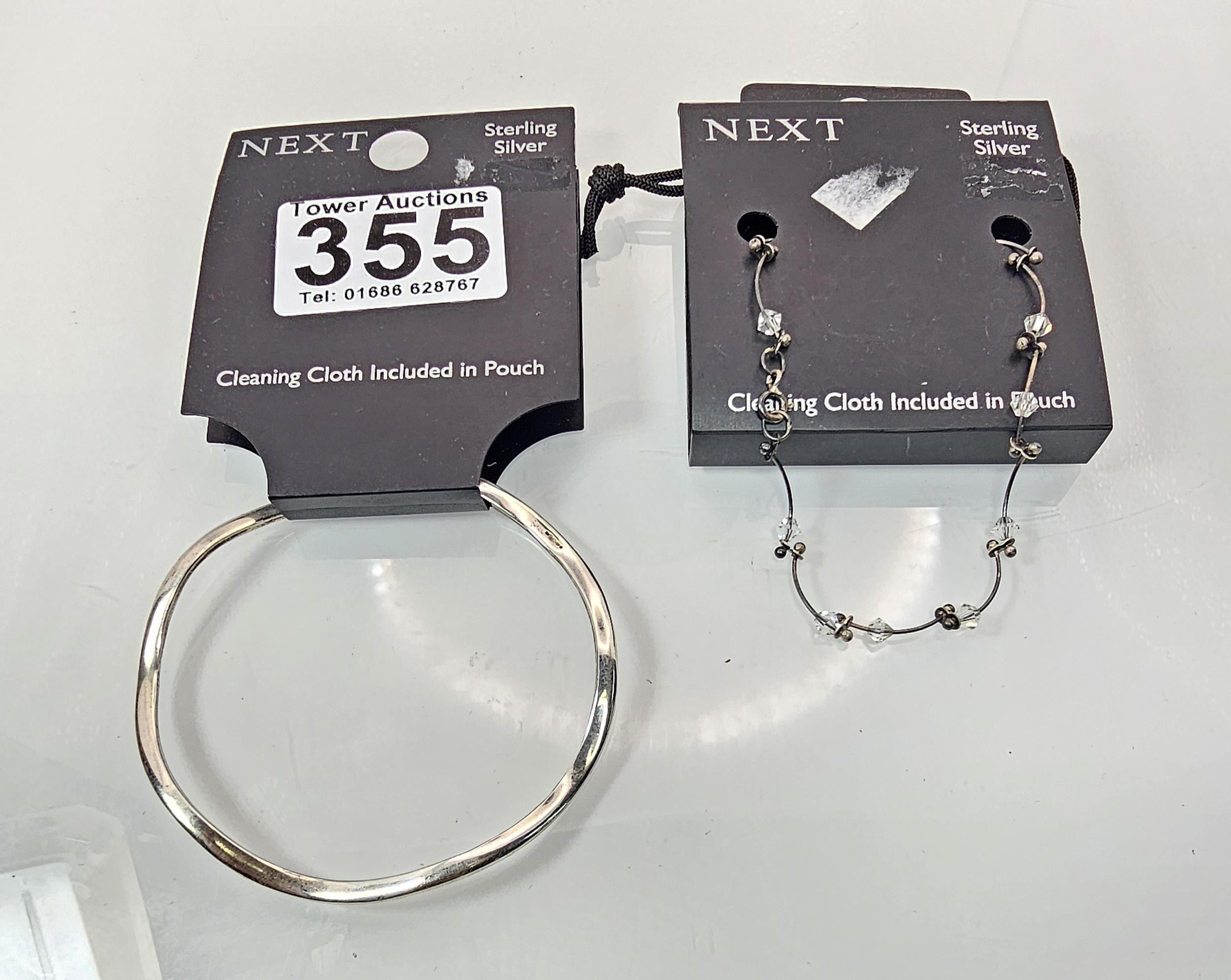 A brand new Next sterling silver bangle with a wave shaped design along with a brand new Next sterling silver bracelet having a crystal brad design.