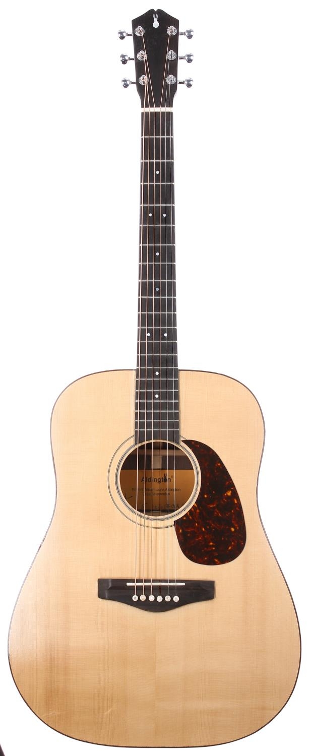 2018 Robert Aldington Dreadnought acoustic guitar, made in England; Back and sides: Indian rosewood; Top: natural spruce; Neck: mahogany; Fretboard: ebony; Frets: good; Hardware: good; Case: Tourtech hard case; Overall condition: very good