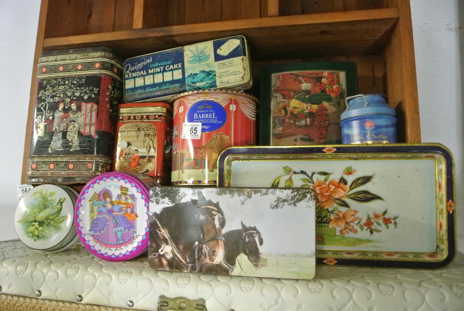 An assortment of retro advertising tins.
