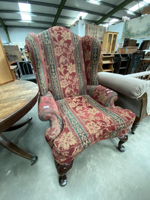 Good quality upholstered high back wing armchair (80W cm)