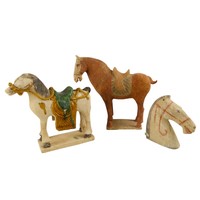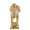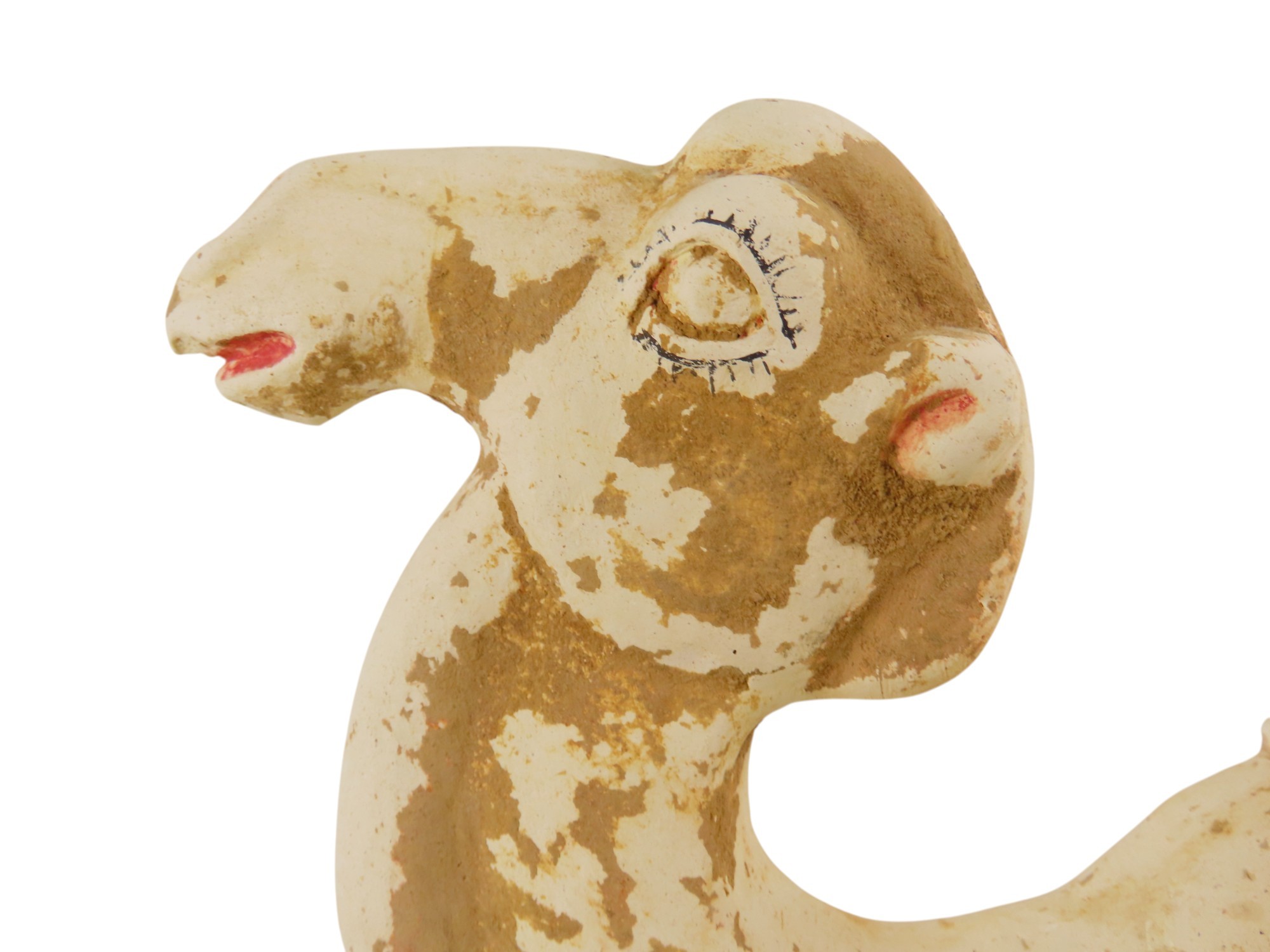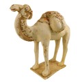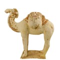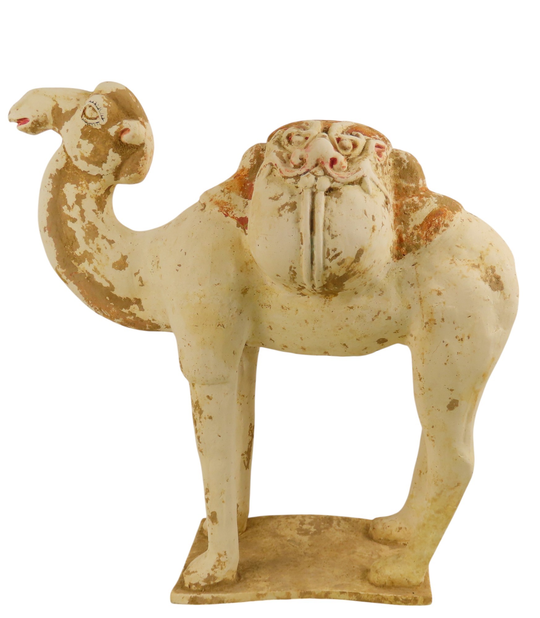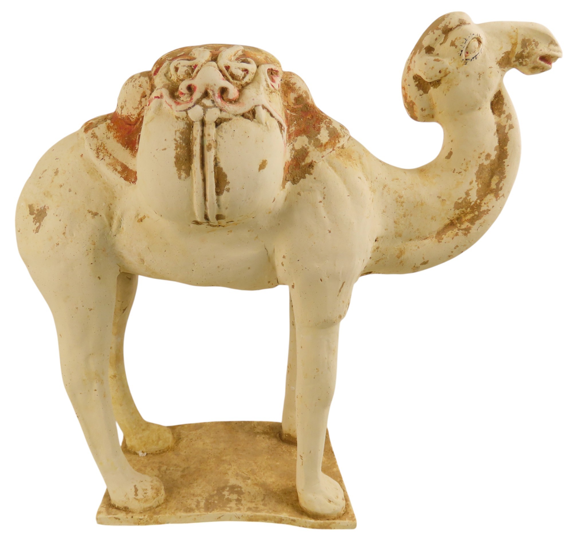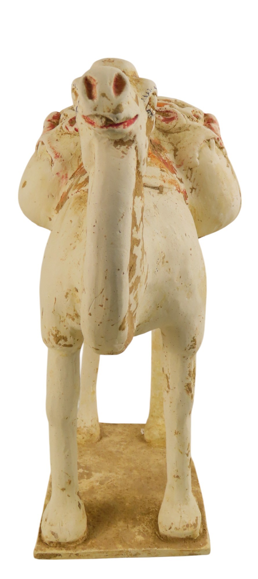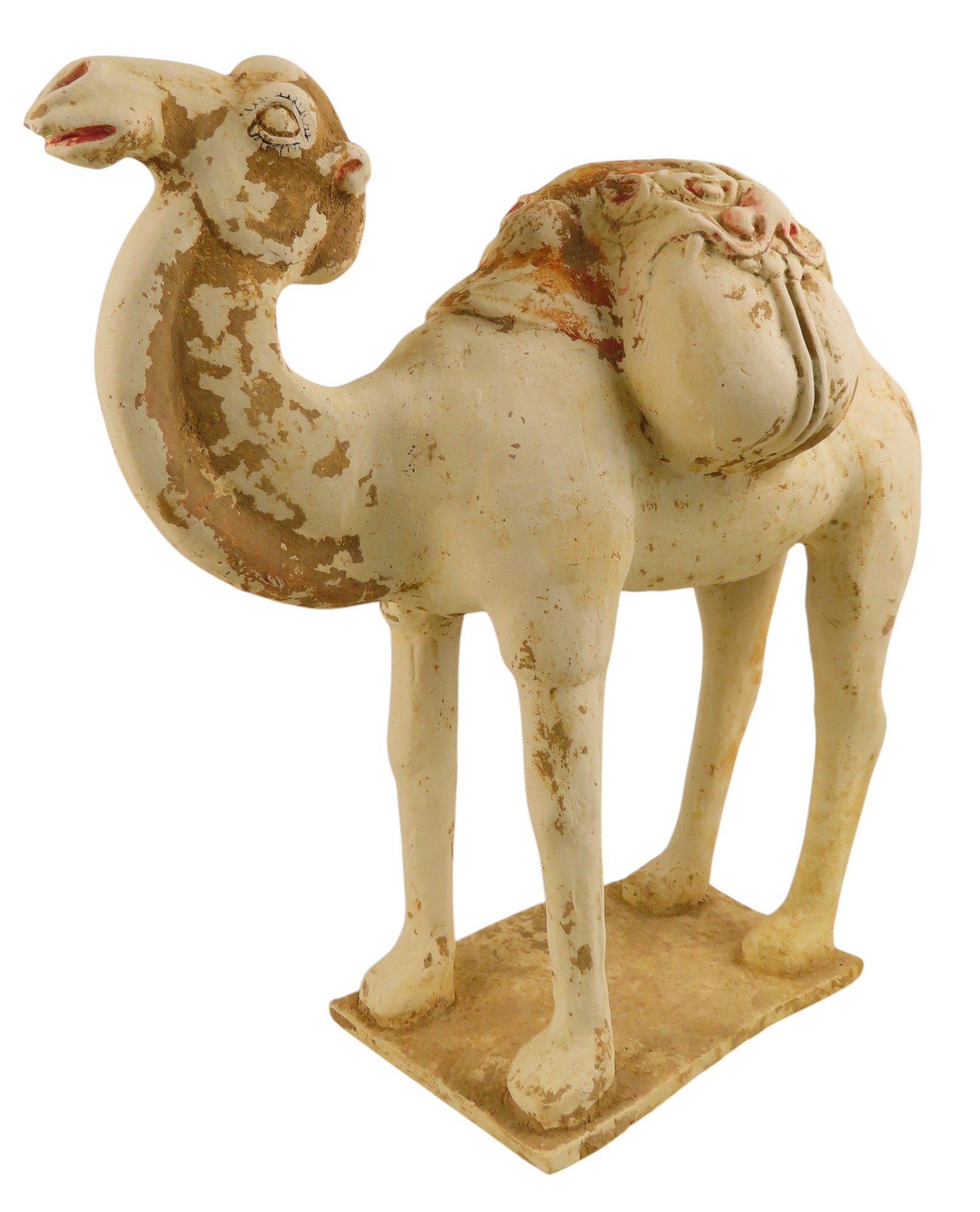 A PAINTED POTTERY FIGURE OF A CAMEL