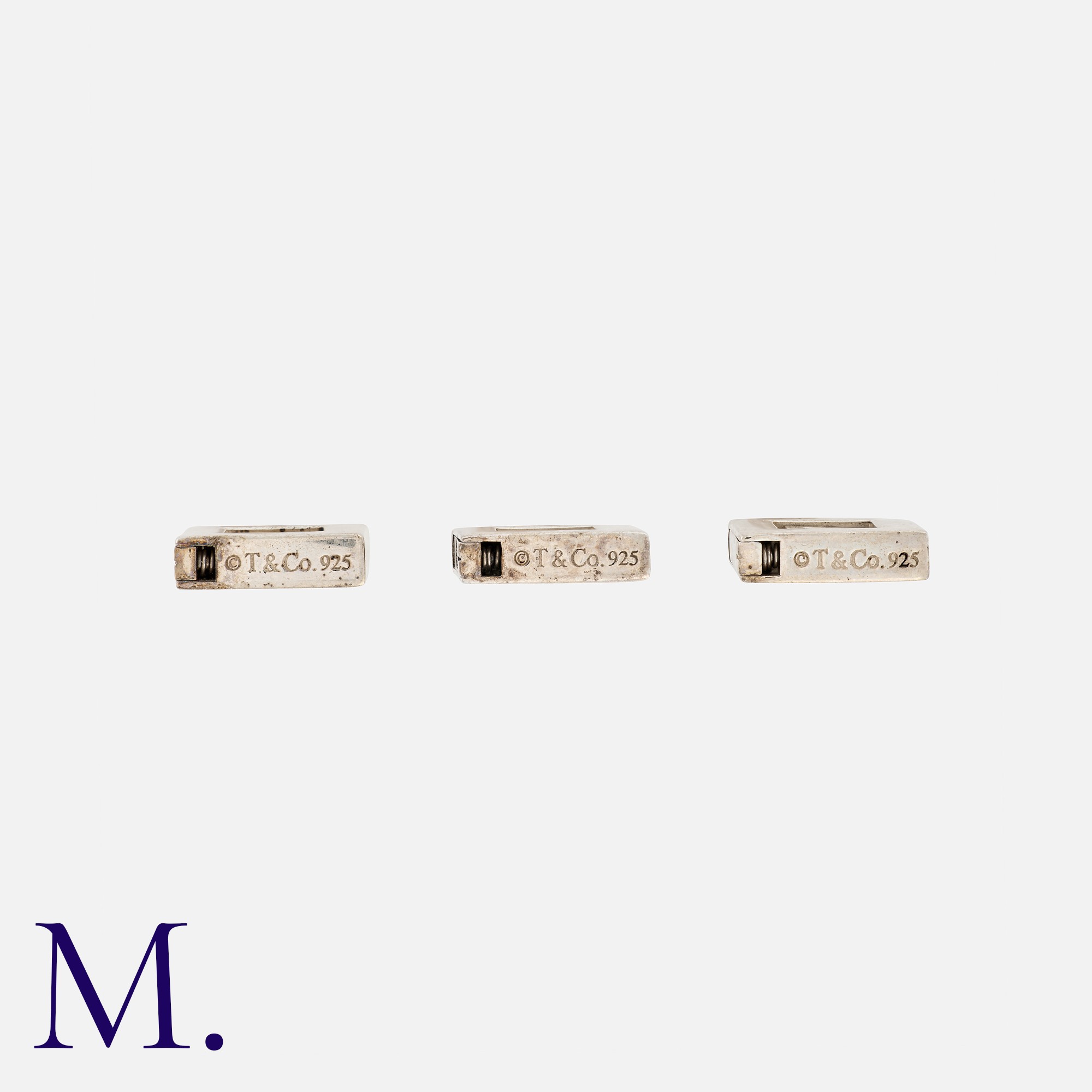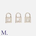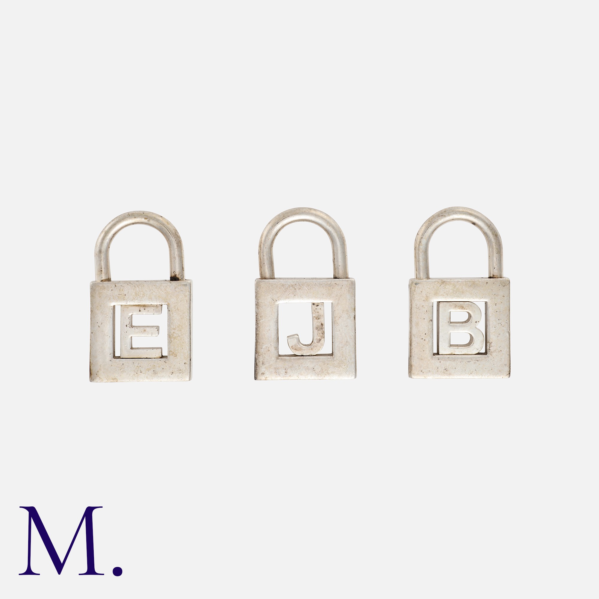 Tiffany & Co, Three Initial Padlock Charms in silver, each comprising an openwork padlock, set to the centre with the letters, 'B' 'E' and 'J'. Stamped T&Co 925.