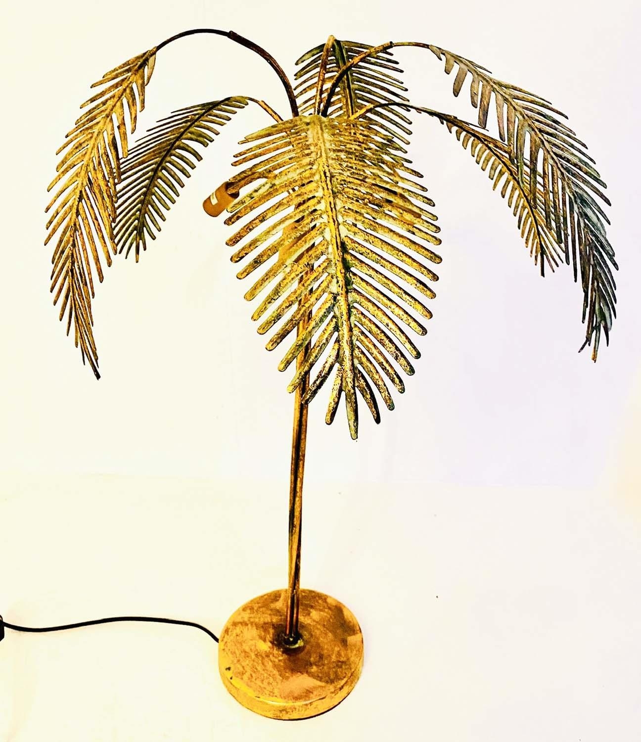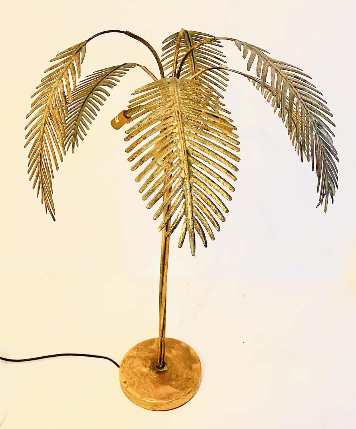 MAISON JANSEN STYLE TABLE LAMP, palm tree design, gilt metal, 80cm high, 48cm diam.