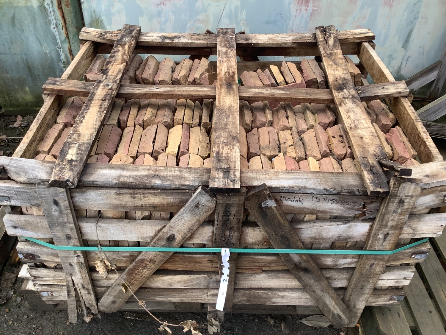 A crate of natural stone pavers