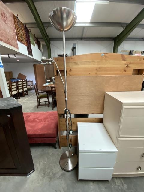 White 2 drawer chest (55H 41W 49D cm) & brushed steel contemporary standard lamp