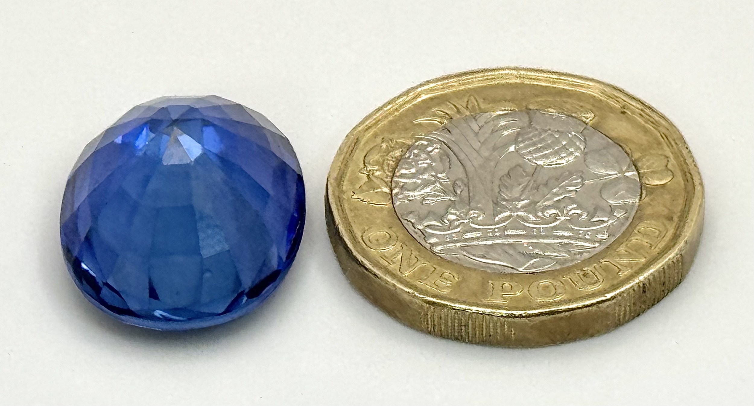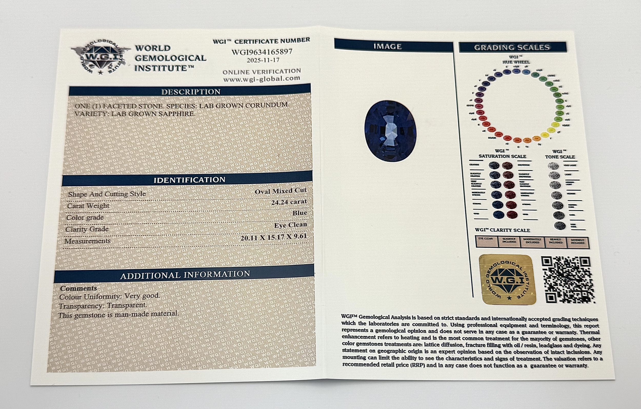 A W.G.I Certified Lab Grown 24.24ct Sapphire. Oval mixed cut.