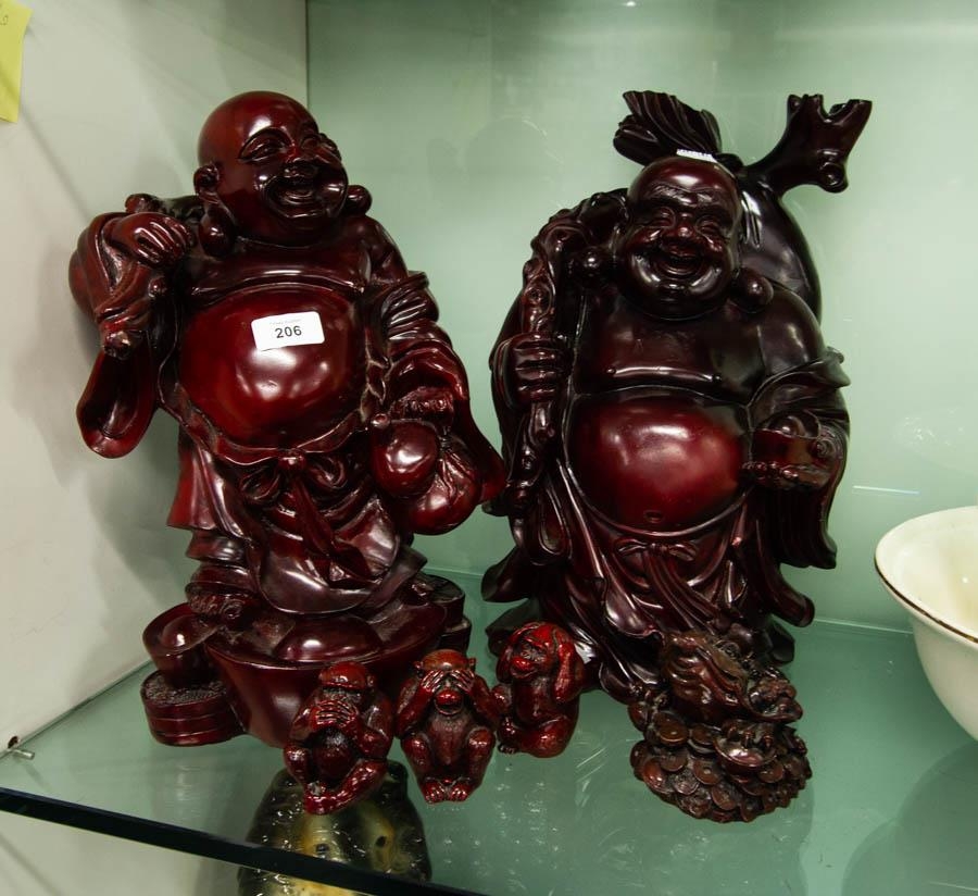2 LAUGHING BUDDHAS, 3 MONKEYS + FISH