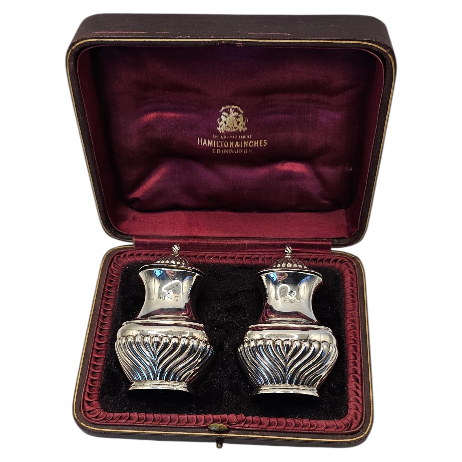 Classical form with fluted decoration, in a fitted velvet lined box marked ‘Hamilton and Inches Edinburgh’, hallmarked Birmingham, 1910.