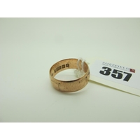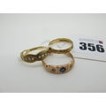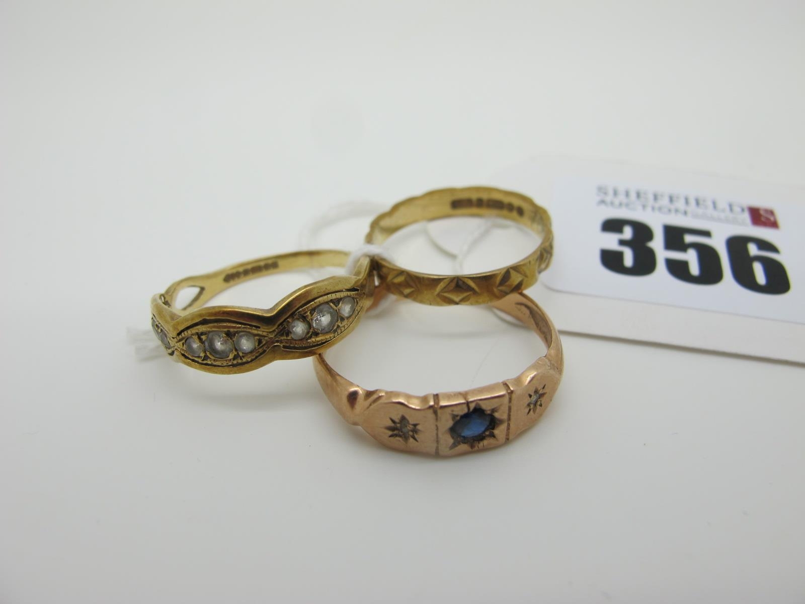A 9ct Gold Patterned Band, (finger size M); a 9ct gold half eternity style ring; a 9ct gold ring, illusion set (5grams). (3)