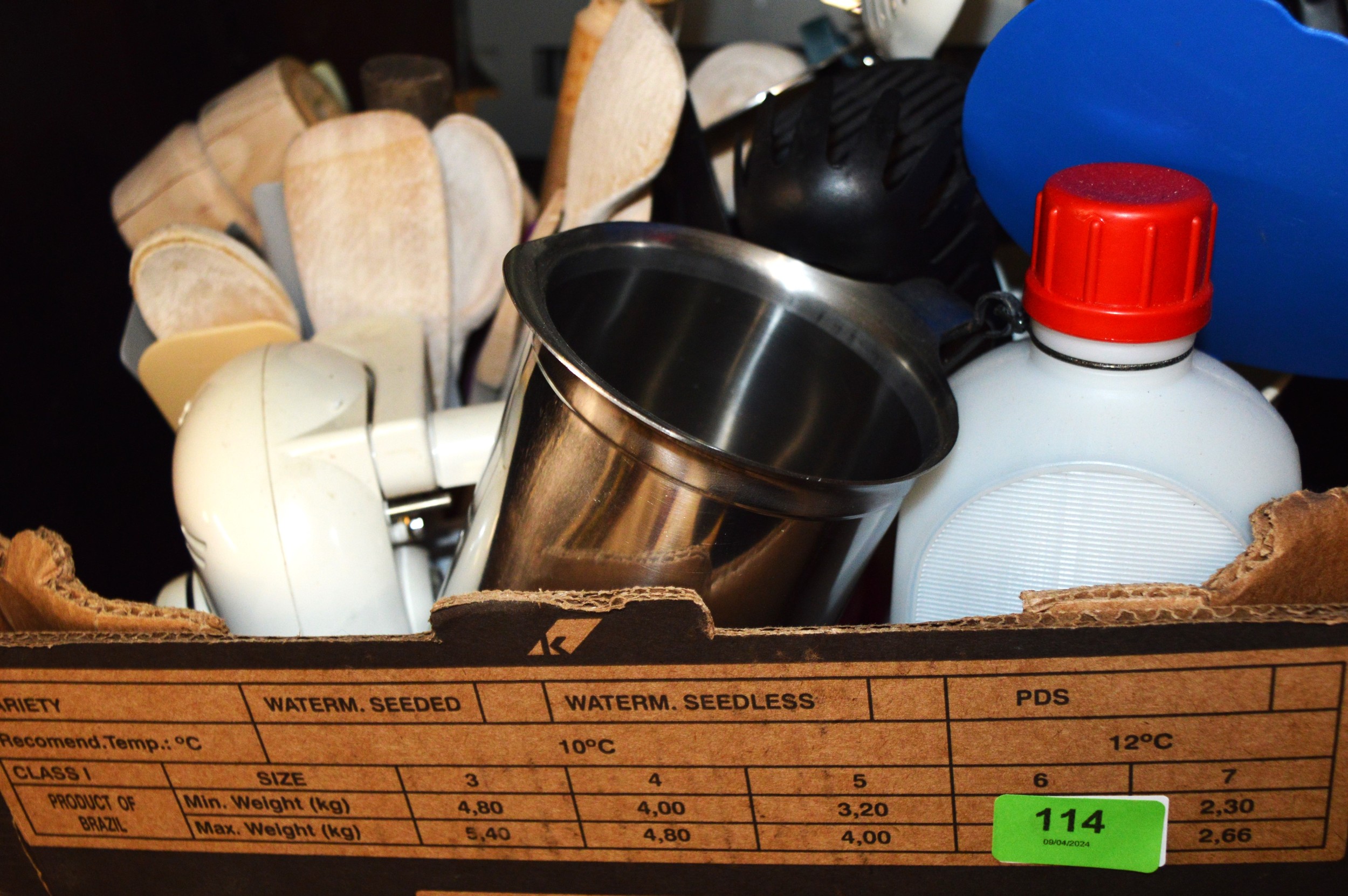 Quantity of Kitchen Utensils, Electrical Tin Opener, Trays, Jugs, Cups, etc