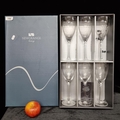 A set of 6 Wine Glasses by Newgrange Living. With a stylized grape vine etched design. As new in original box.