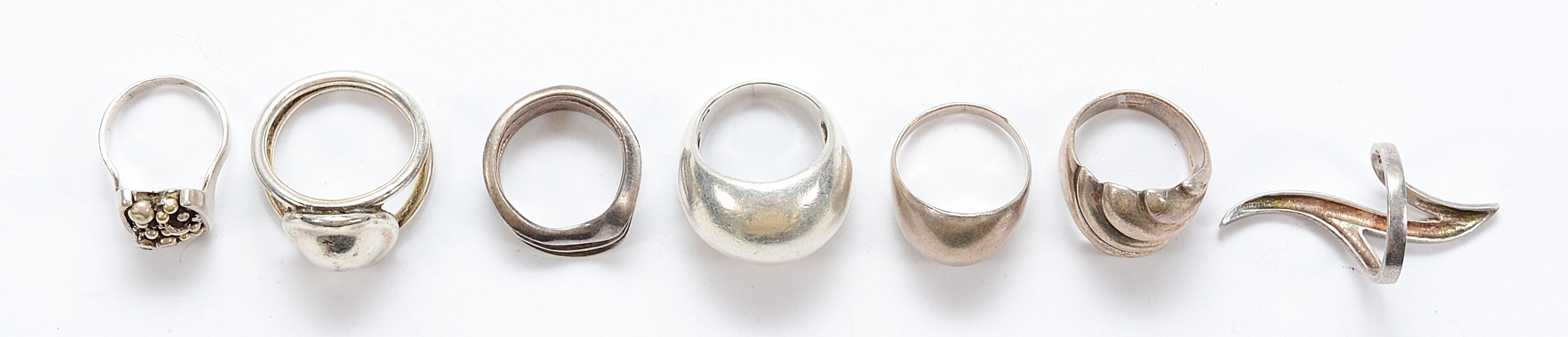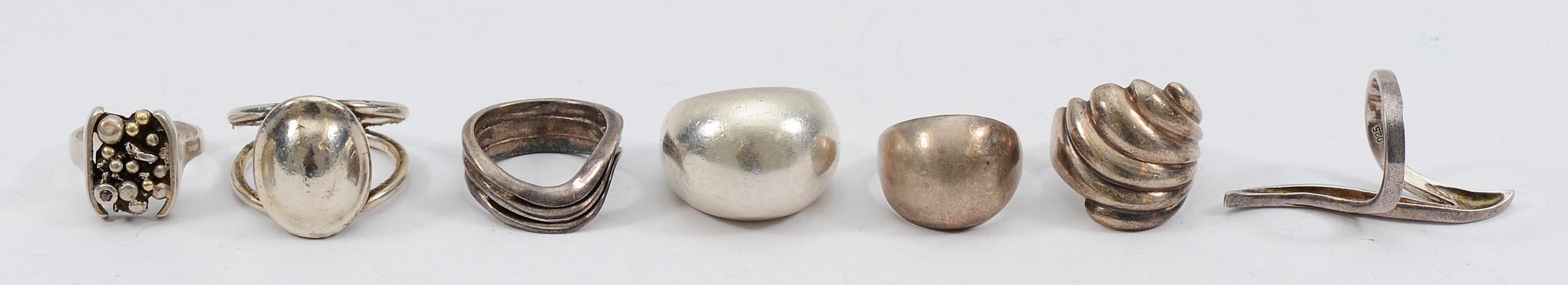 Seven 925 silver rings, K-T, 51g