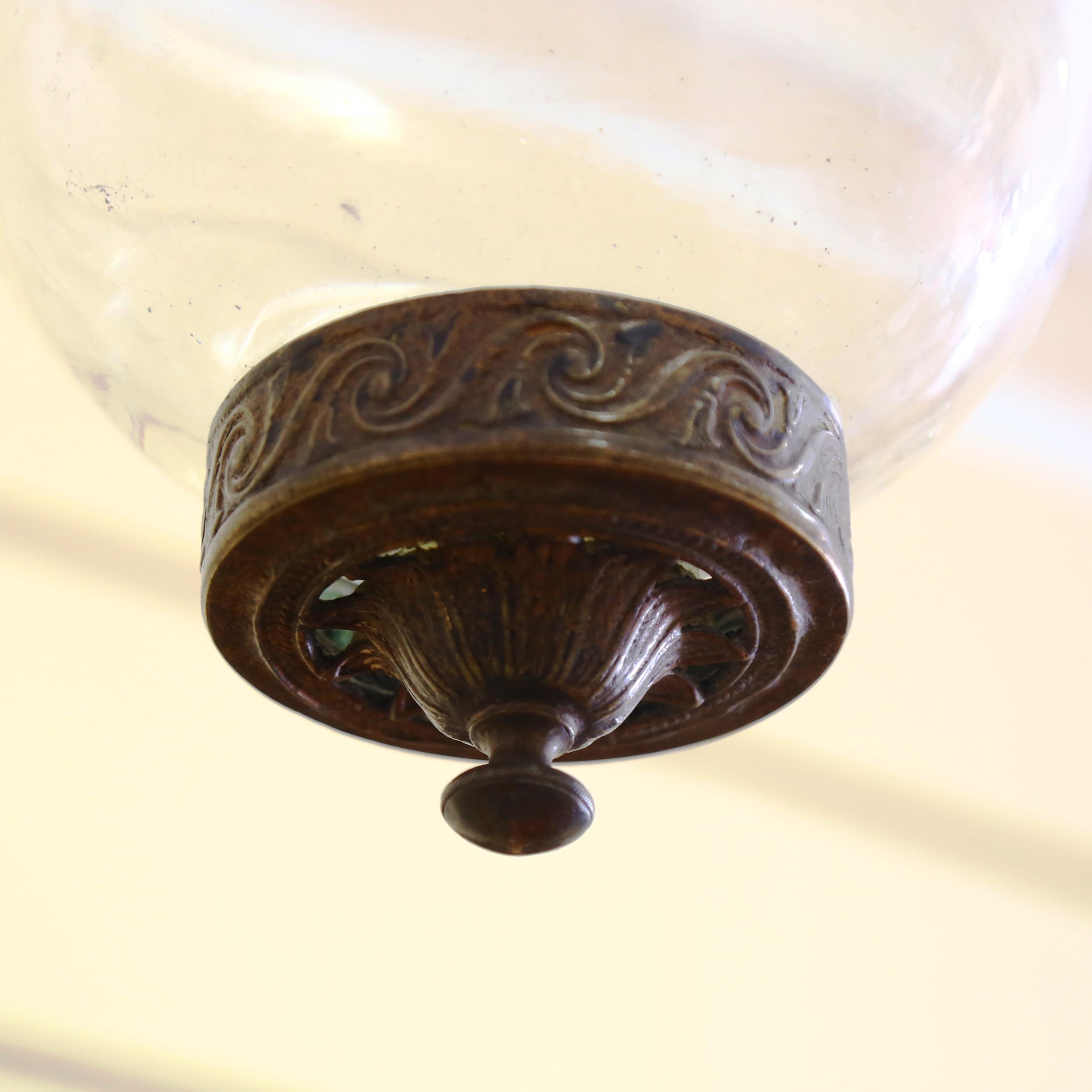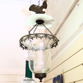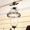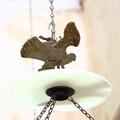 A glass and brass hanging light bowl with dove suspension, height approx 70cm