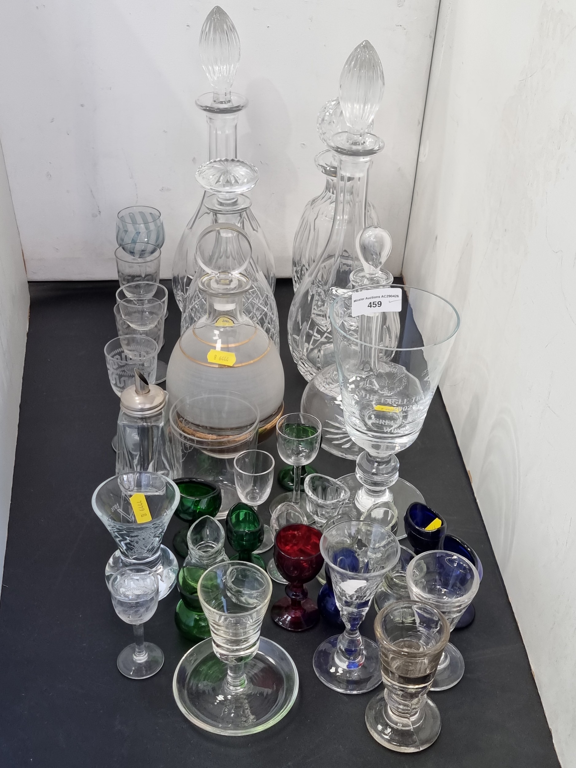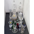 A quantity of glassware including Decanters, Drinking Glasses, and a small collection of various coloured Eye Baths, (R5)