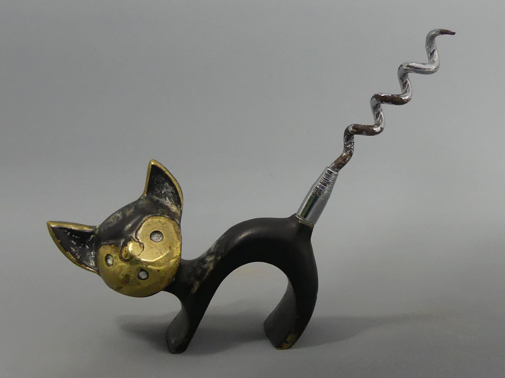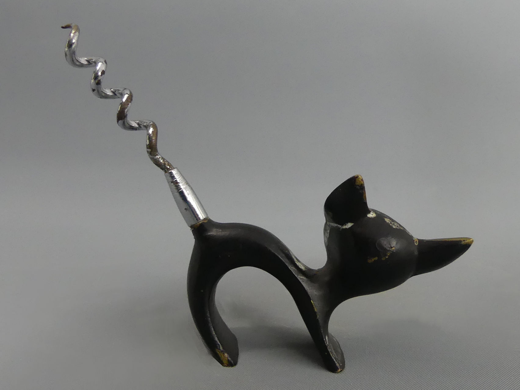 Art Deco bronze stylised cat design novelty corkscrew. 9 cm high. UK Postage £12.