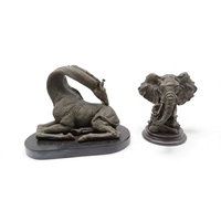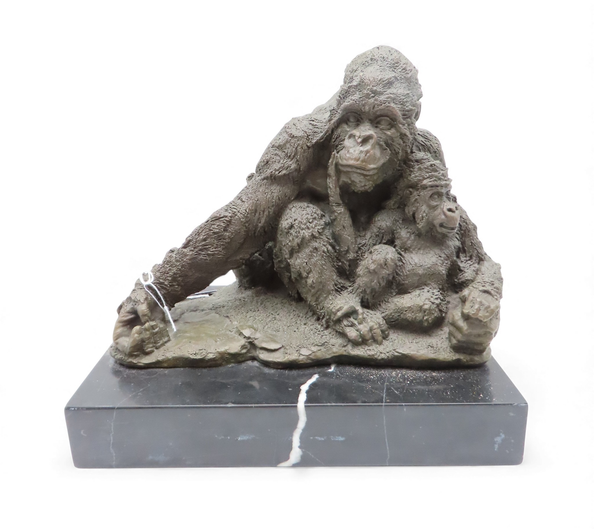 A contemporary bronze of an Gorilla and infant on marble base, signed Walton