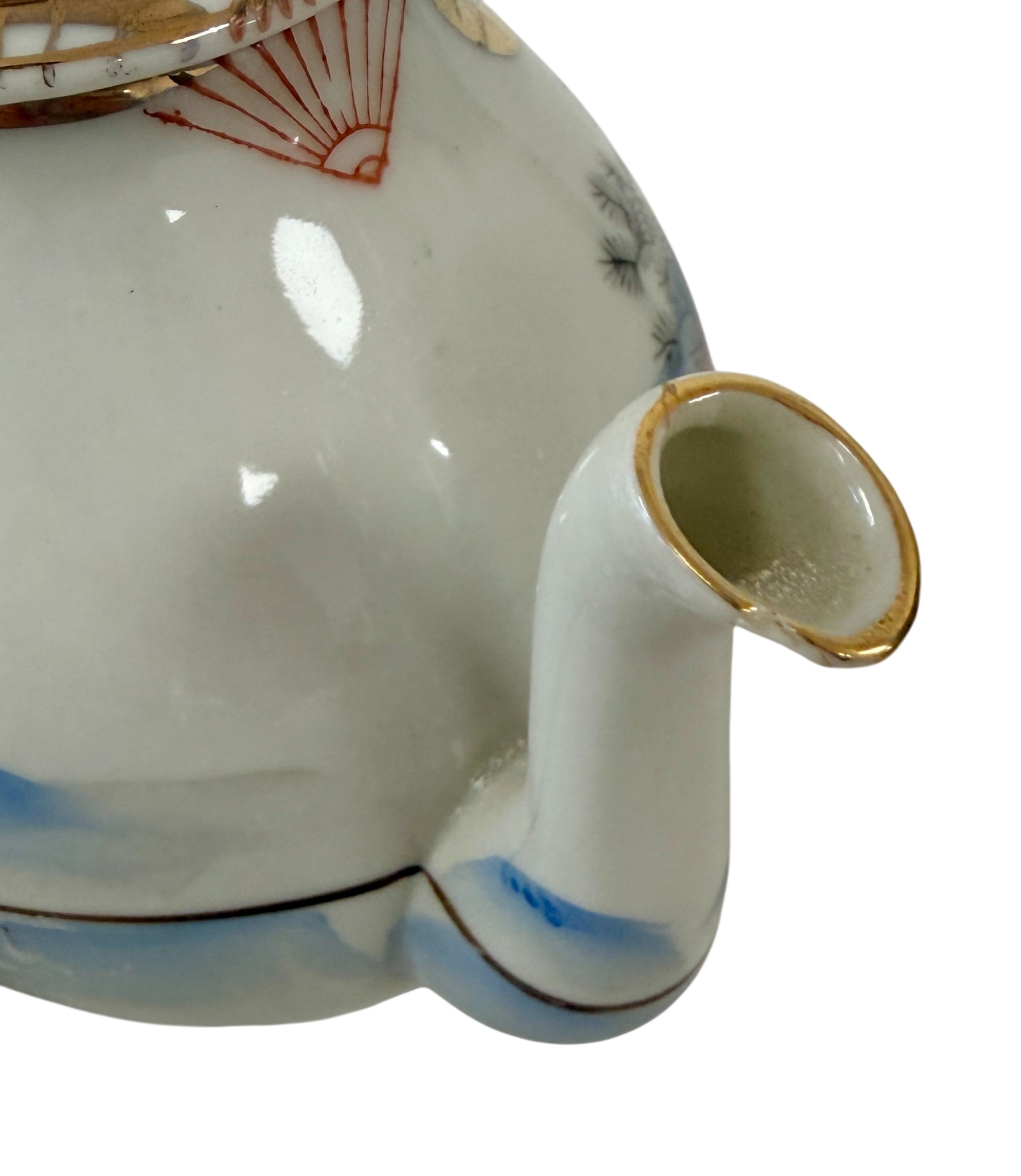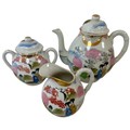 Part tea service, 20th century in typical Kutani palette. One small chip noted on spout of teapot.