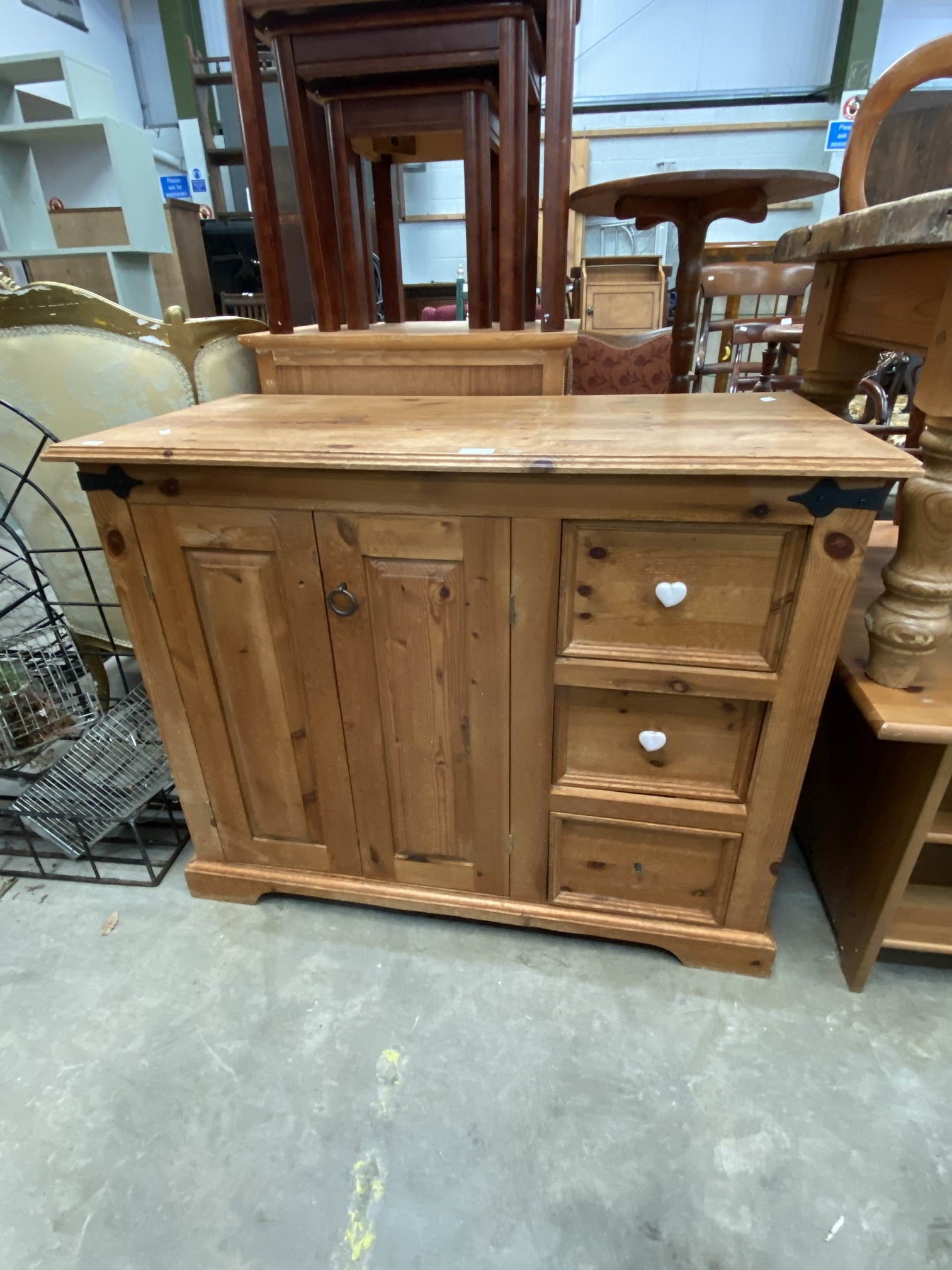 Pine three drawer/two door sideboard 81H 100W 33D