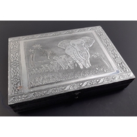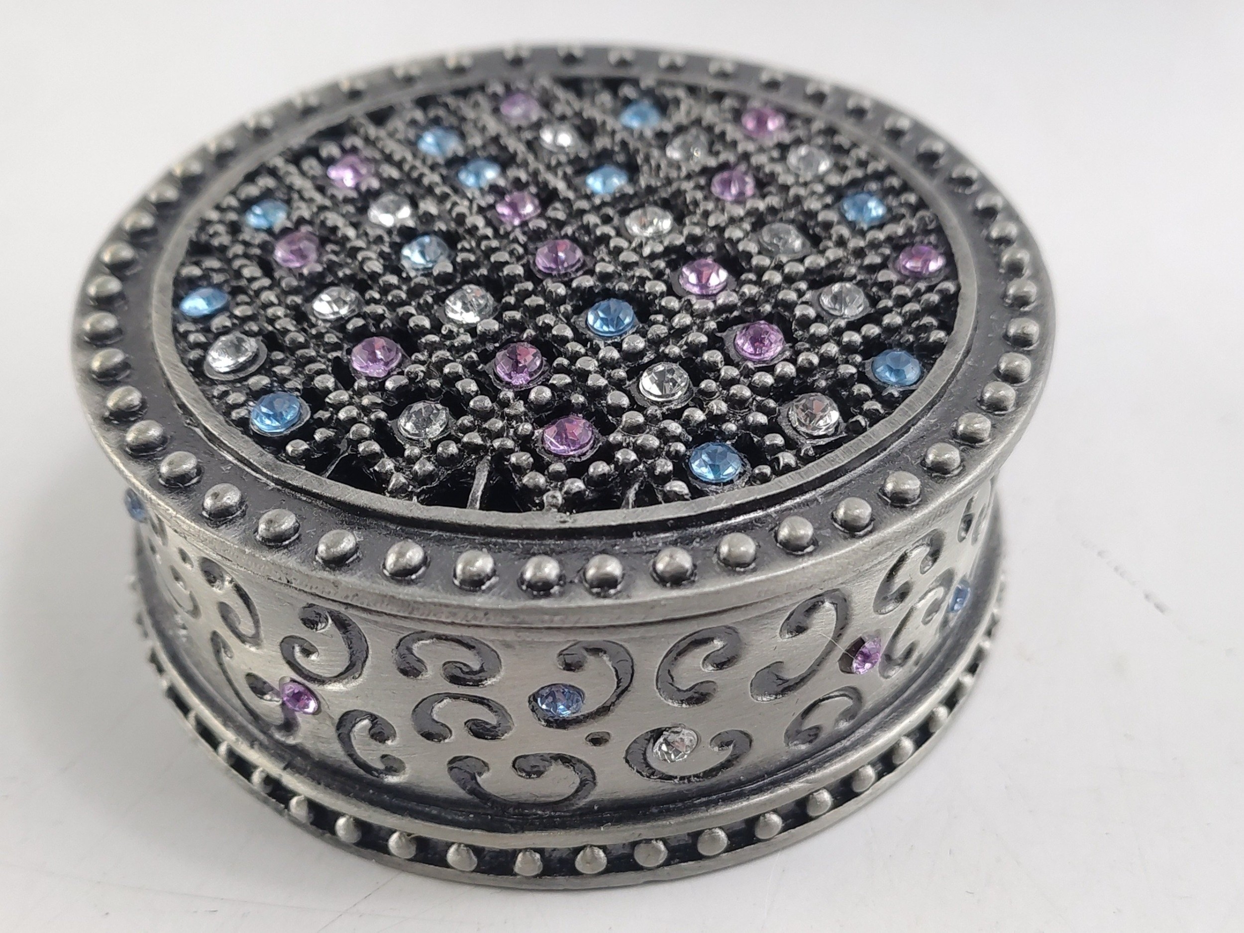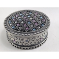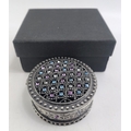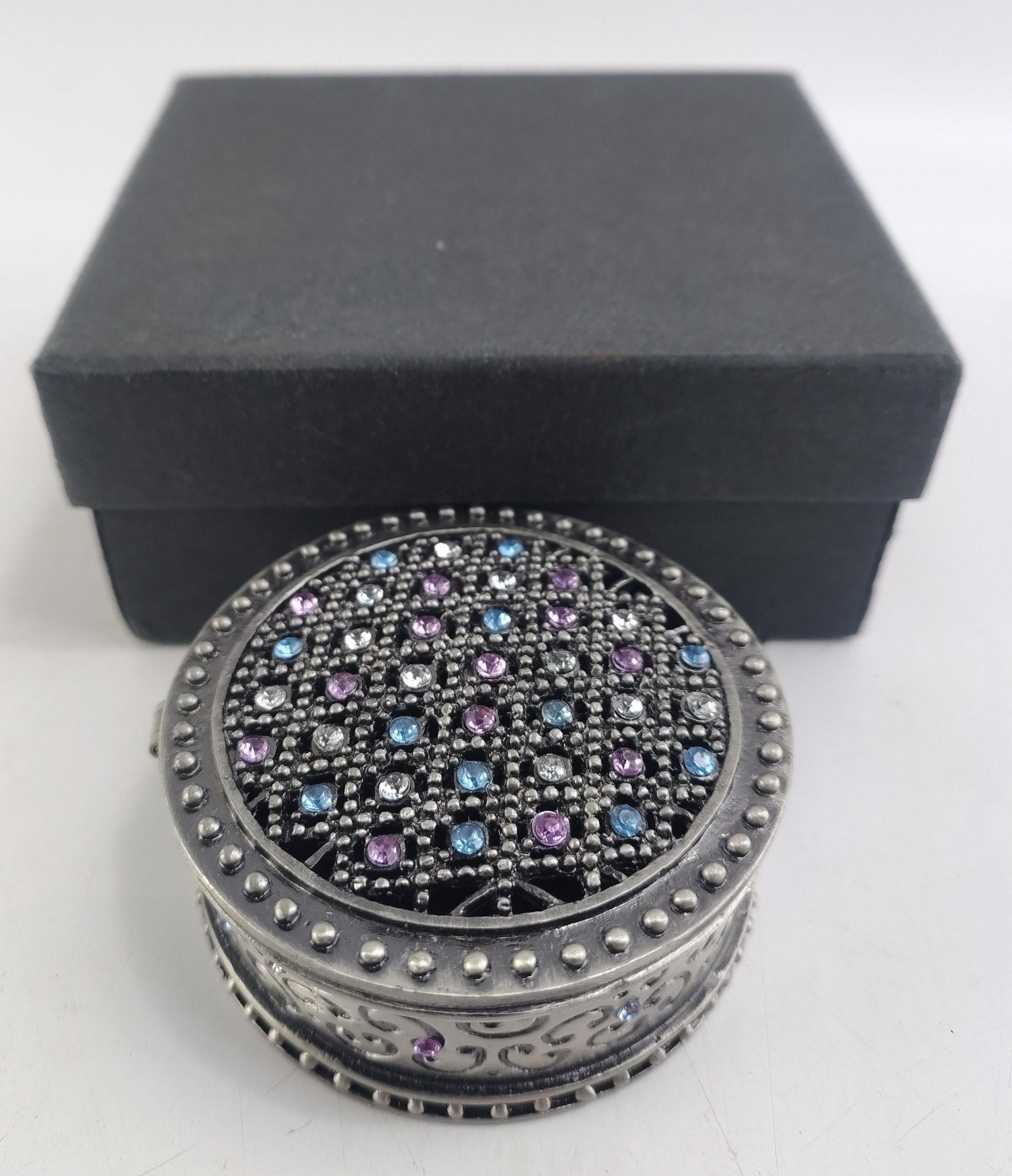 A heavy jewelled-style jewellery trinket box within its original presentation box - 7cm diameter approx