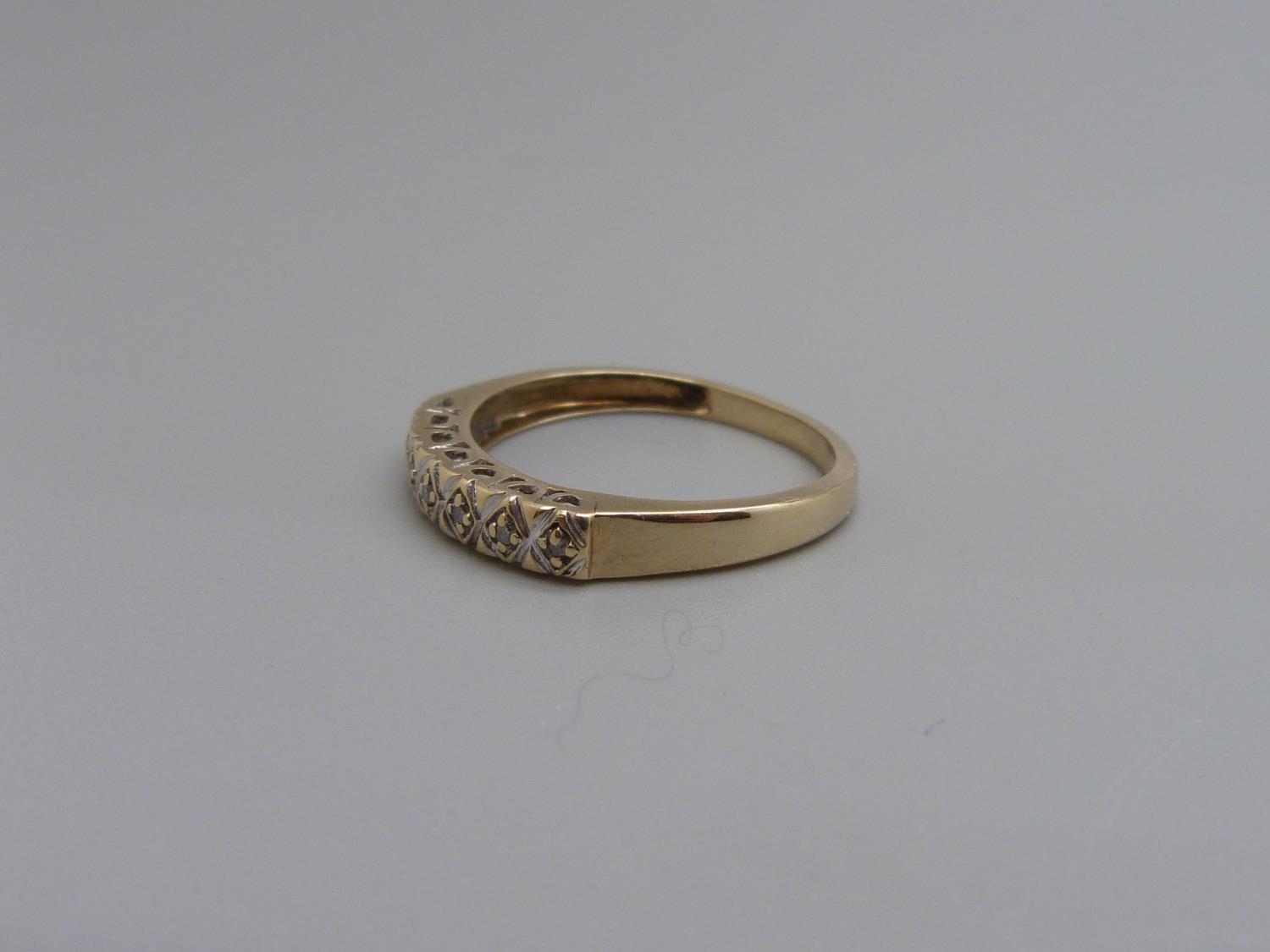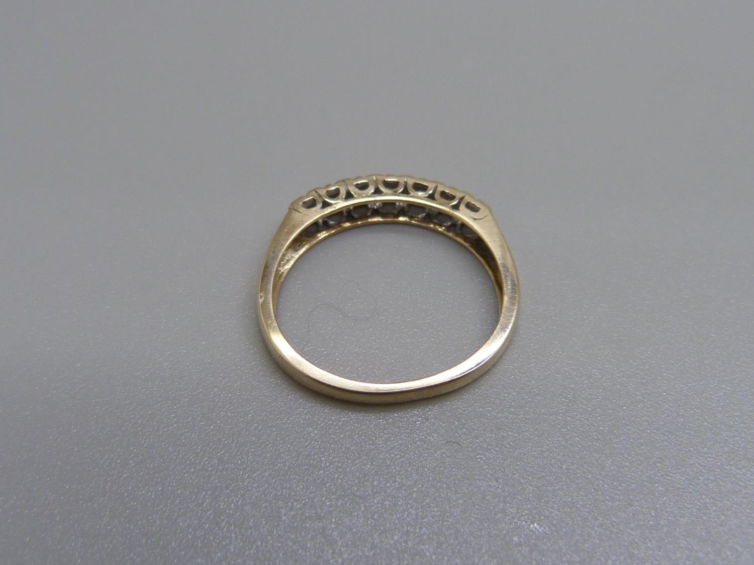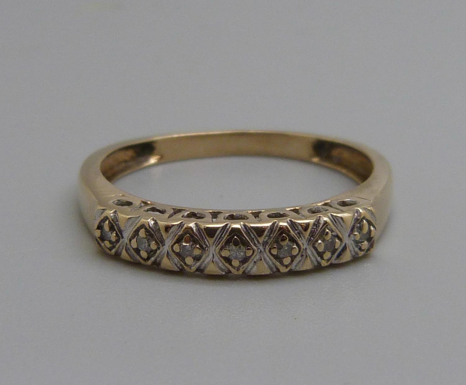 A 9ct gold, seven stone diamond ring, 1.9g, O