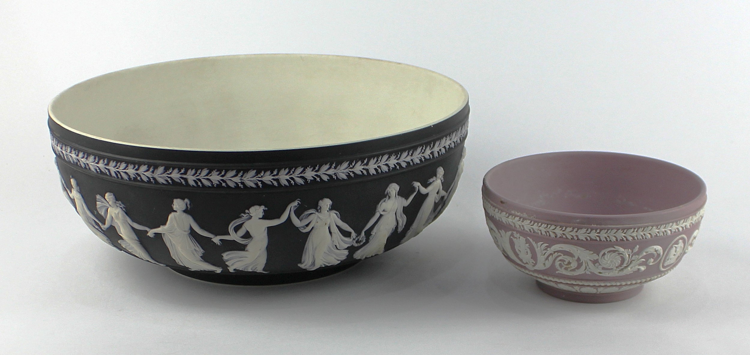 Two Wedgwood Jasperware ceramic bowls, 26cm and 13cm diameters, (2).