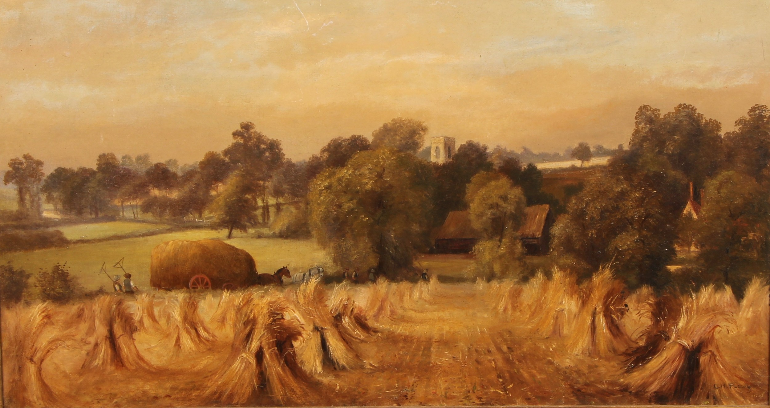 English SchoolLoaded Hay Wagon,inscribed C.H. Passey, oil on canvas, 49cm x 89.5cm