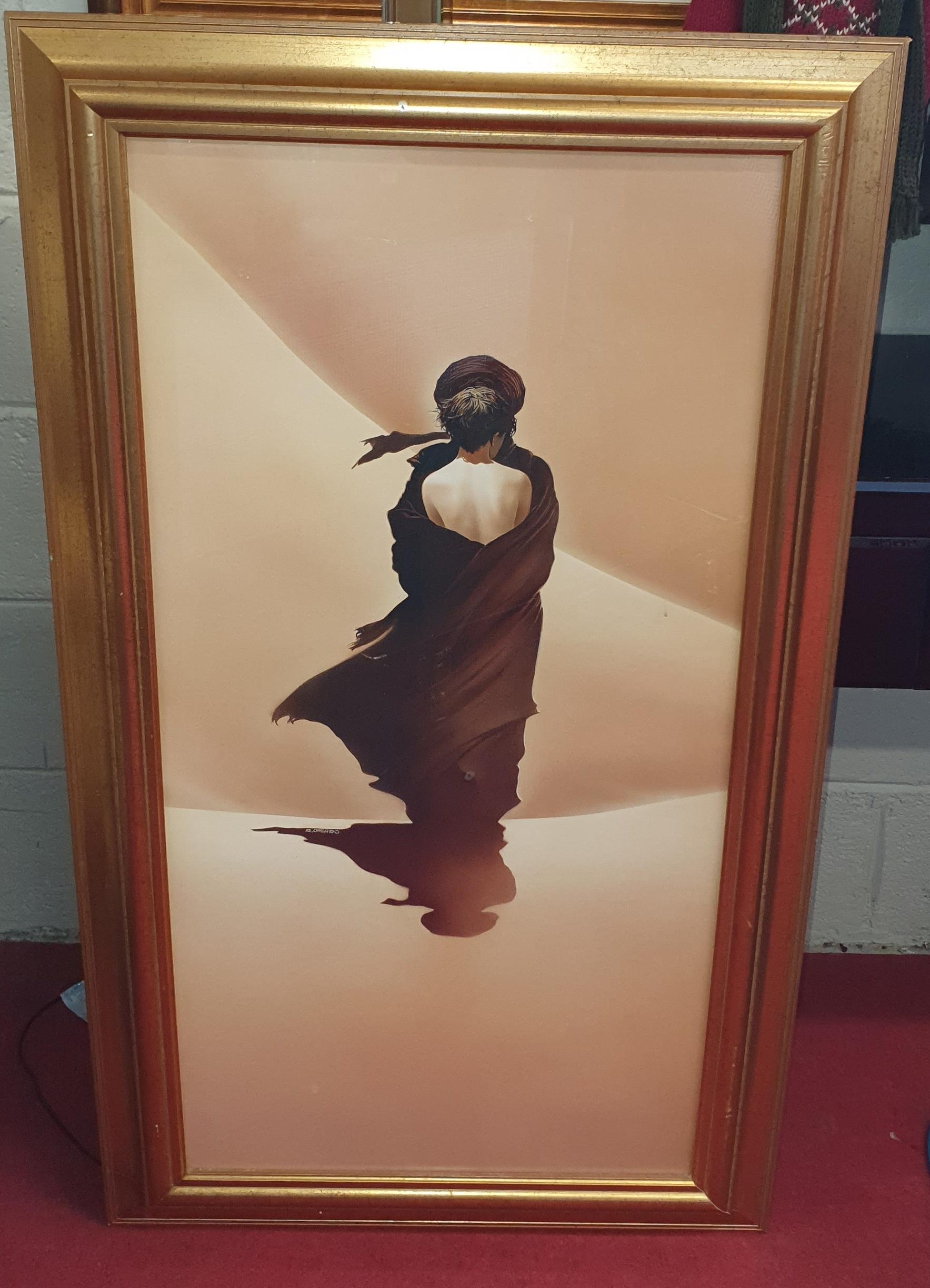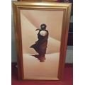 A coloured Print of an Arab holding a boy. In a gilt frame. 116 x 65 cm approx.