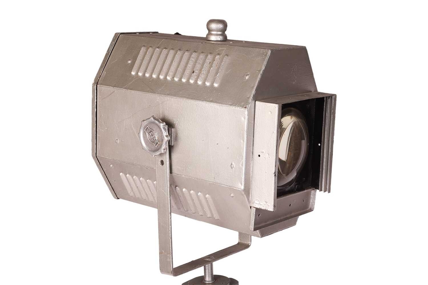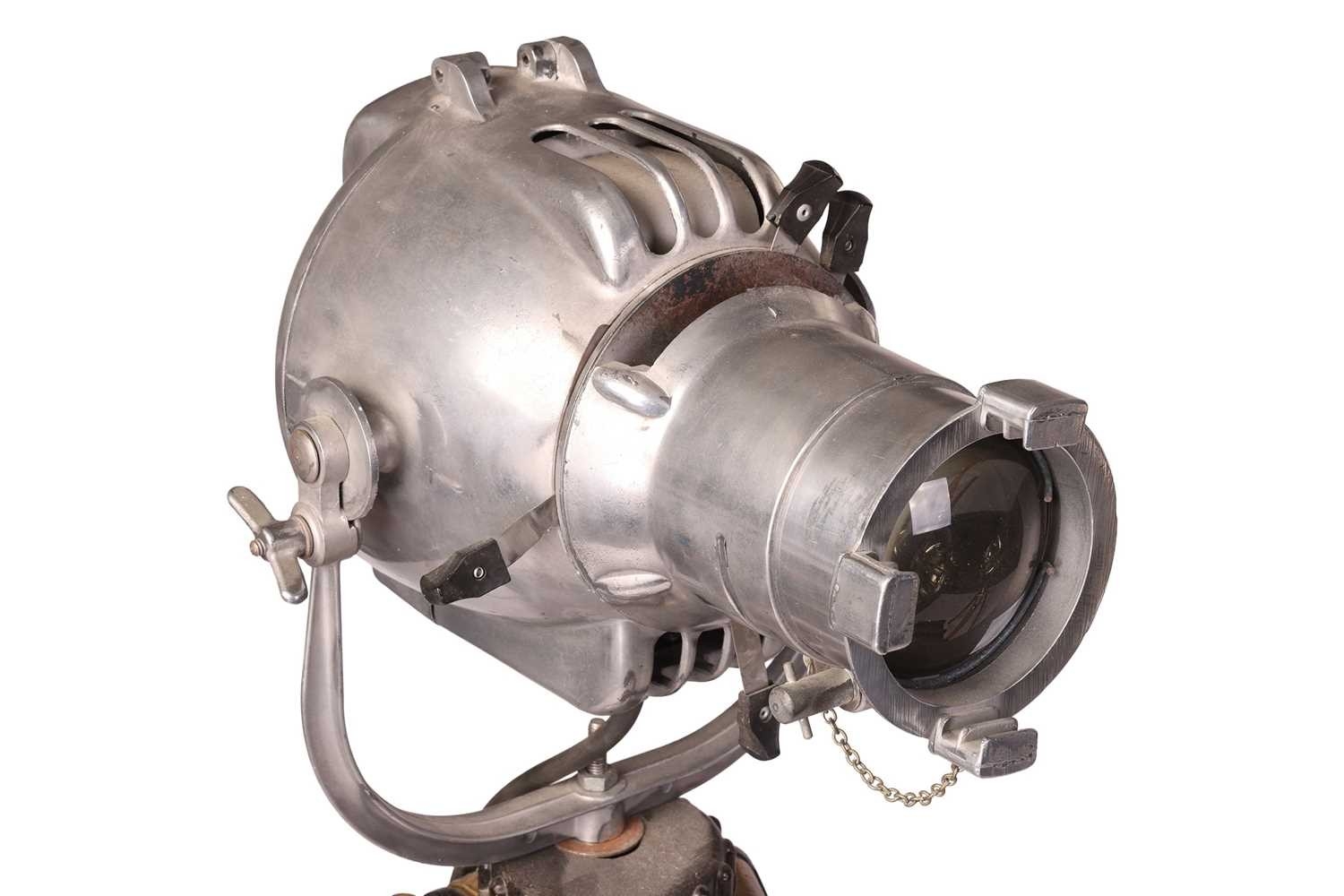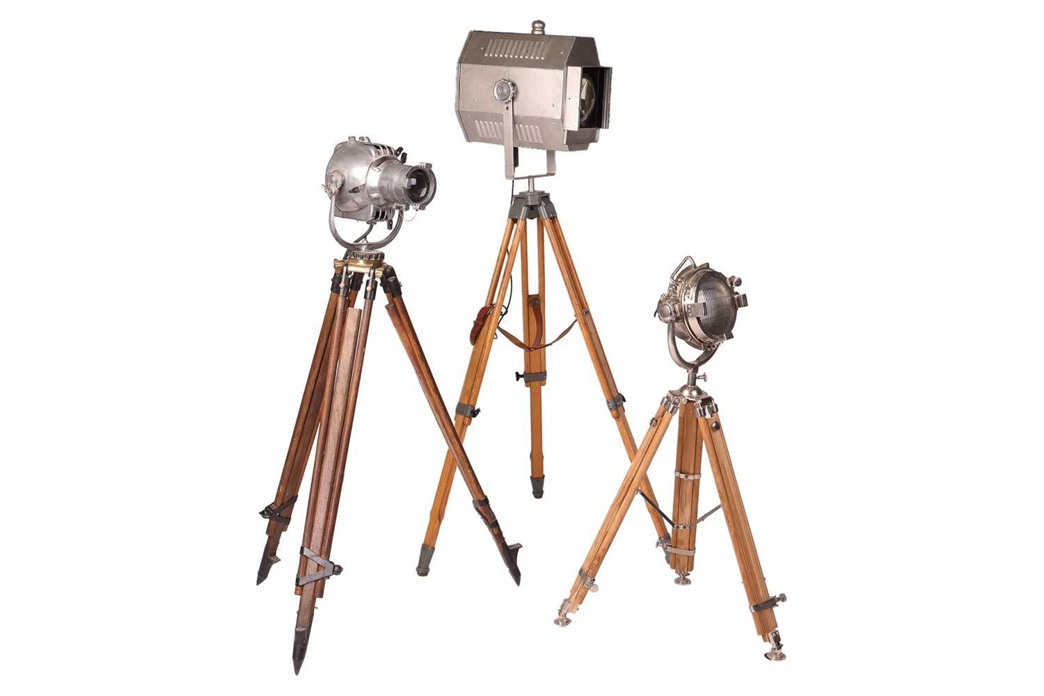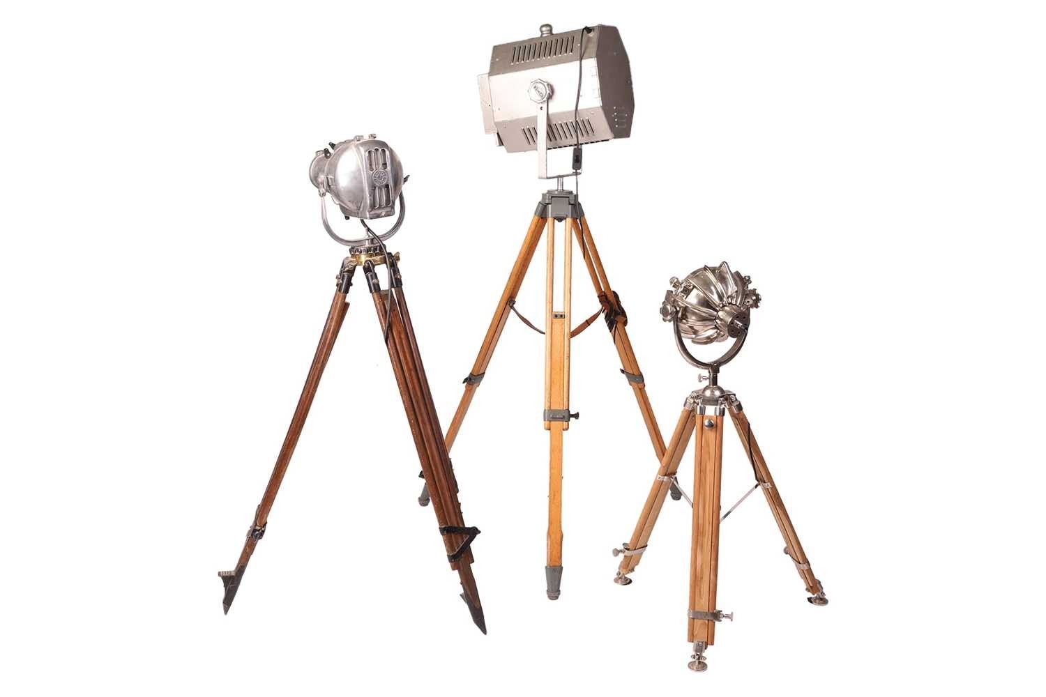 Three studio lights on adjustable tripod bases, by Strand Electric, Major, and one unnamed, the largest 160 cm high.